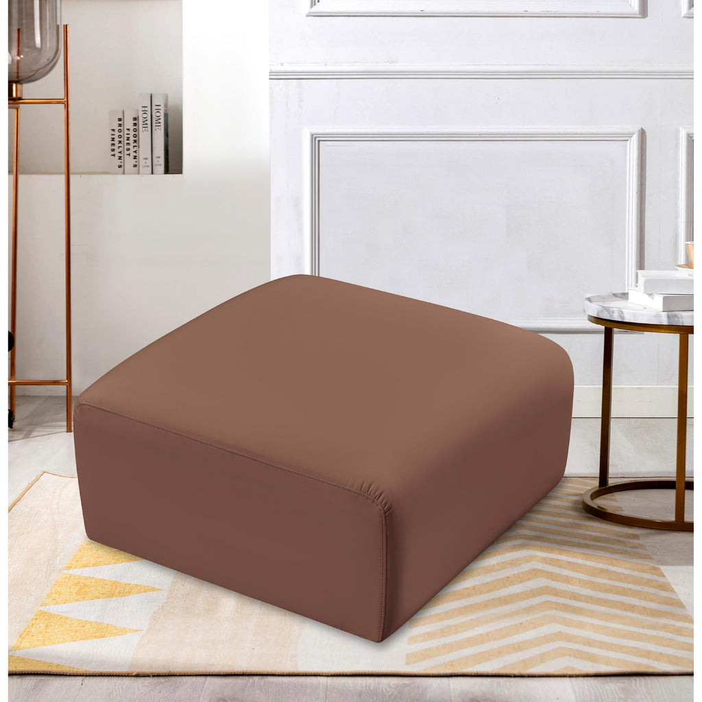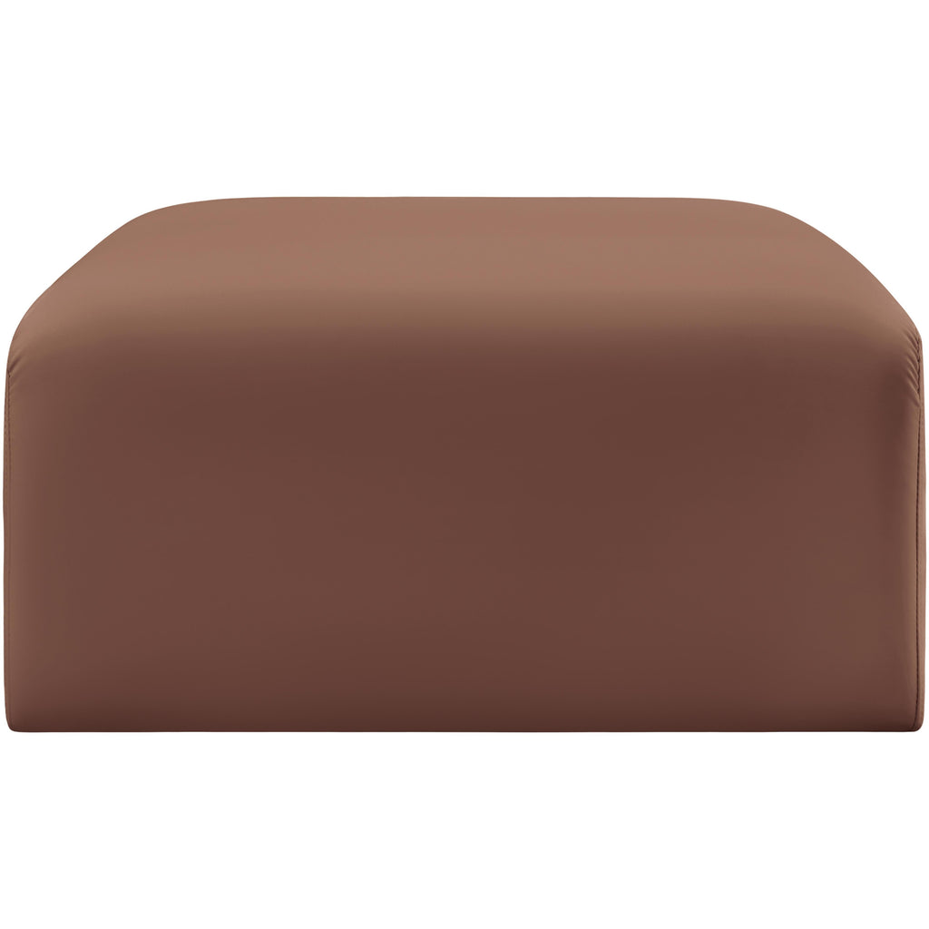 Unleash modern opulence with the Arc Vegan Leather Ottoman. Crafted for the modern connoisseur, this ottoman injects an air of refined luxury into any space. Its sleek silhouette, upholstered in supple cognac vegan leather, exudes timeless sophistication while the deep channel tufting adds textural intrigue, further elevating the chair's visual appeal. The modular design makes it a versatile chameleon, effortlessly adapting to your evolving needs and preferences. Whether you envision it gracing a chic living room corner, basking in the glow of a bedroom window, or adding a touch of drama to a home office, the Arc seamlessly complements your unique interior aesthetic.
