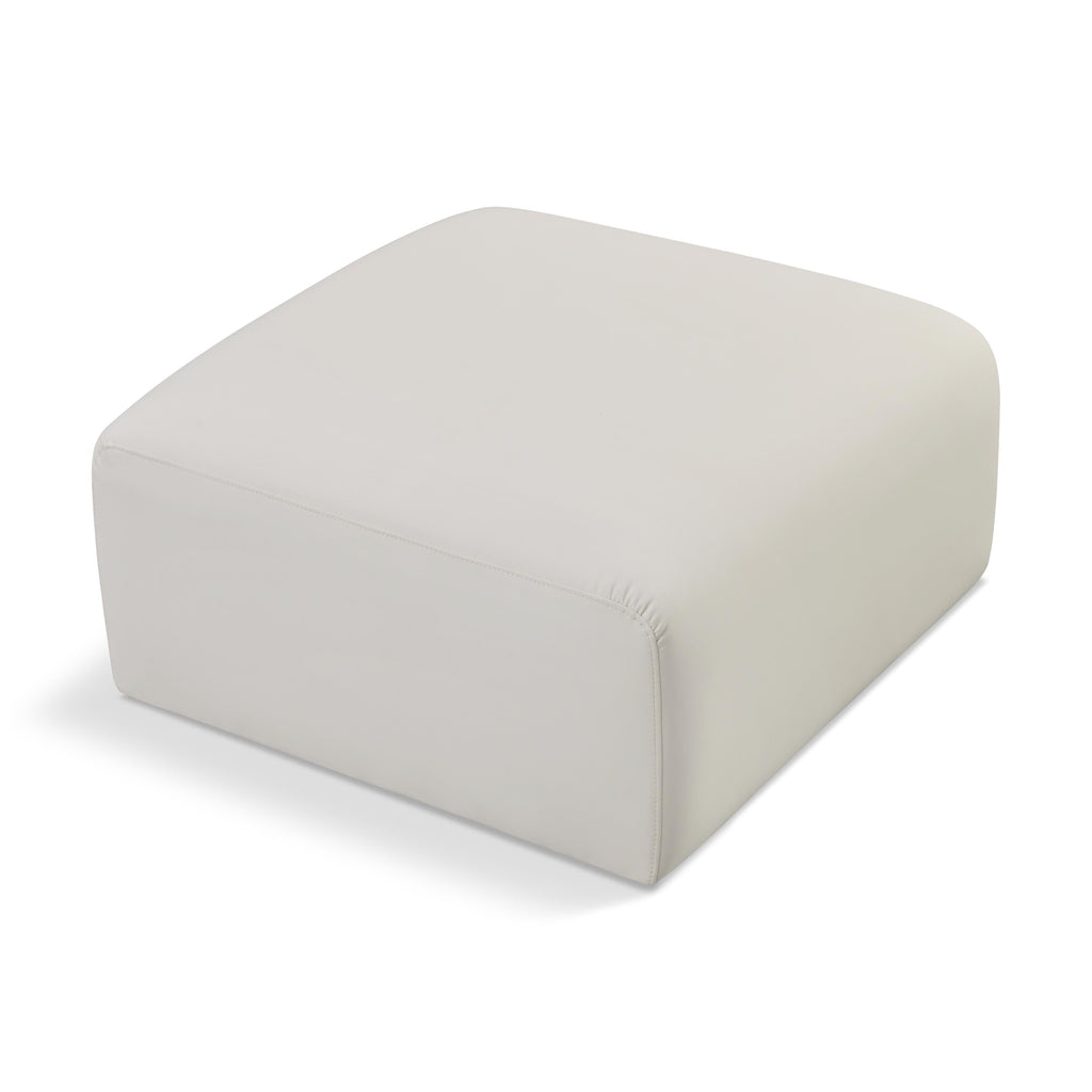 Unleash modern opulence with the Arc Vegan Leather Ottoman. Crafted for the modern connoisseur, this ottoman injects an air of refined luxury into any space. Its sleek silhouette, upholstered in supple cream vegan leather, exudes timeless sophistication while the deep channel tufting adds textural intrigue, further elevating the chair's visual appeal. The modular design makes it a versatile chameleon, effortlessly adapting to your evolving needs and preferences. Whether you envision it gracing a chic living room corner, basking in the glow of a bedroom window, or adding a touch of drama to a home office, the Arc seamlessly complements your unique interior aesthetic.