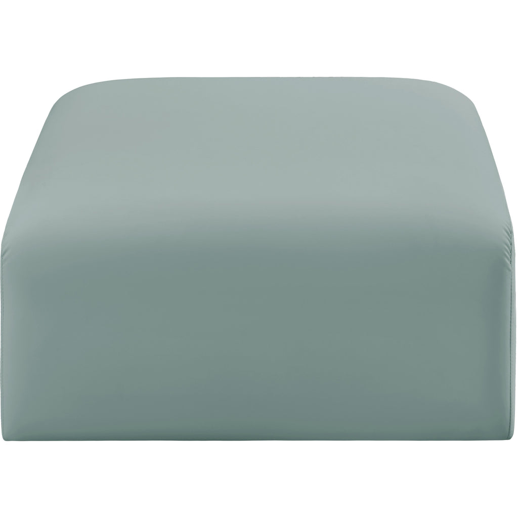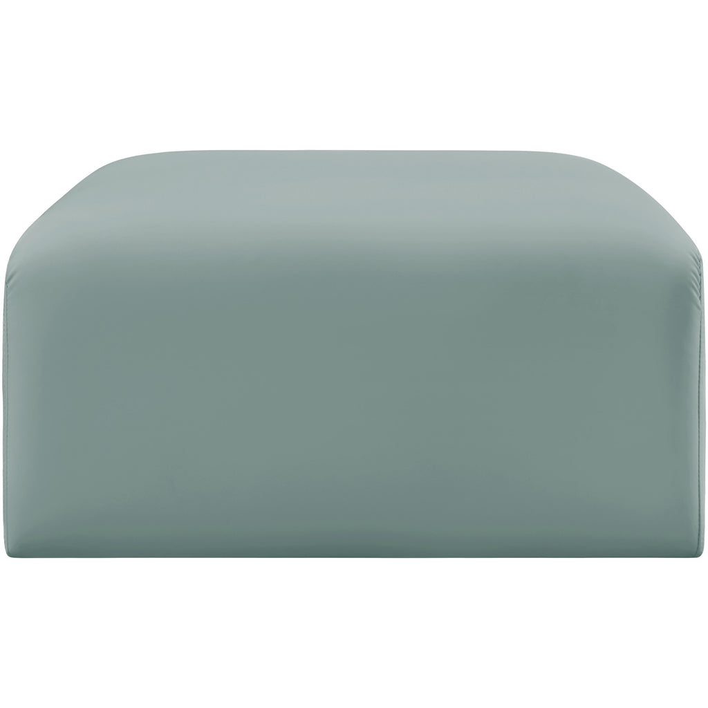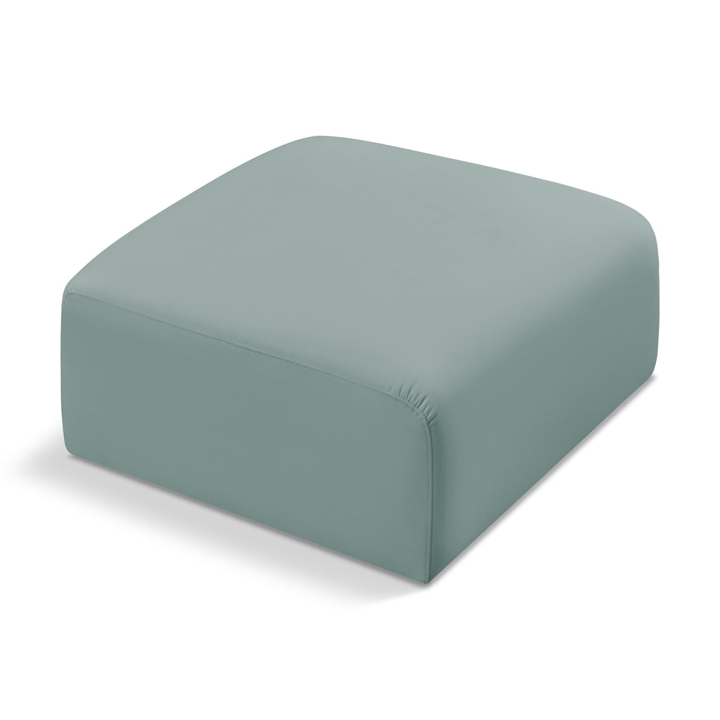 Unleash modern opulence with the Arc Vegan Leather Ottoman. Crafted for the modern connoisseur, this ottoman injects an air of refined luxury into any space. Its sleek silhouette, upholstered in supple mint green vegan leather, exudes timeless sophistication while the deep channel tufting adds textural intrigue, further elevating the chair's visual appeal. The modular design makes it a versatile chameleon, effortlessly adapting to your evolving needs and preferences. Whether you envision it gracing a chic living room corner, basking in the glow of a bedroom window, or adding a touch of drama to a home office, the Arc seamlessly complements your unique interior aesthetic.