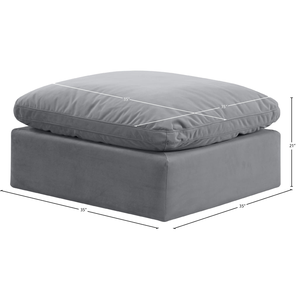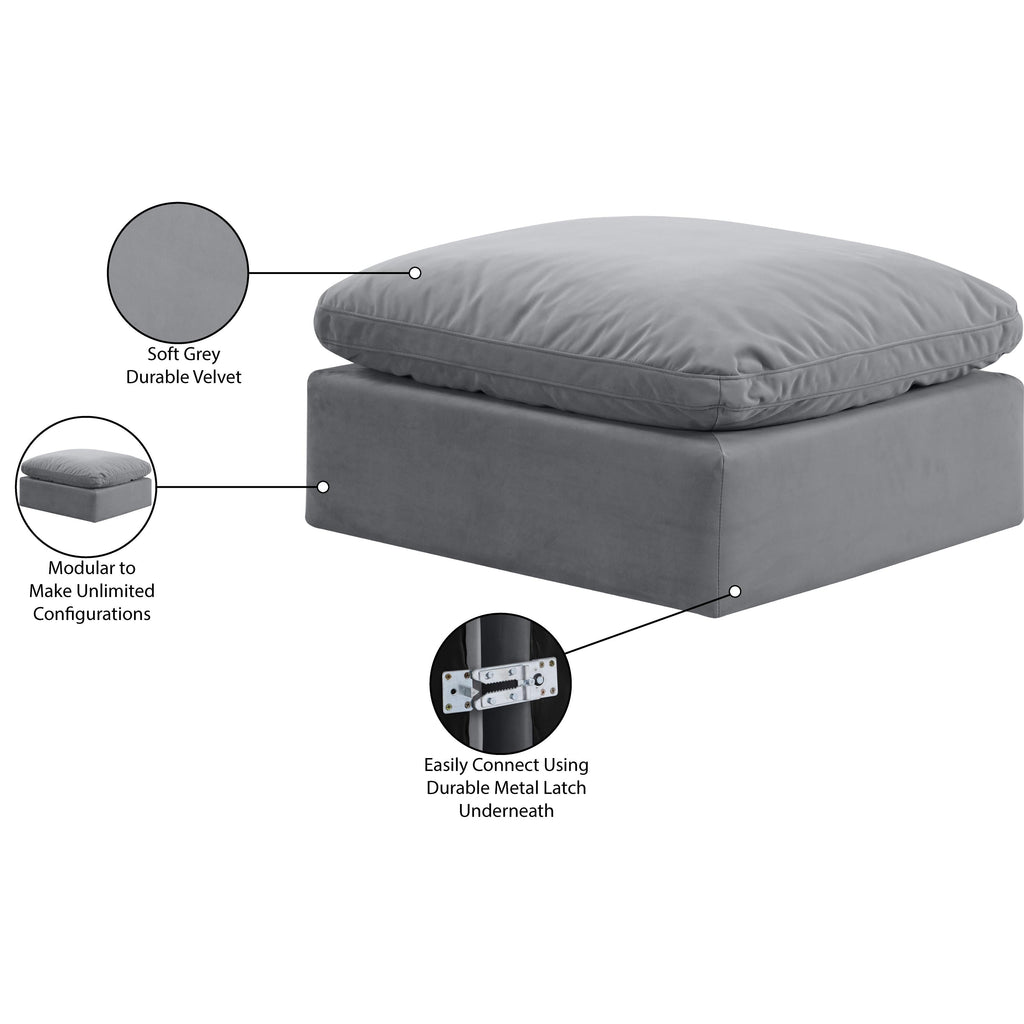Experience ultimate comfort and style with our grey velvet Indulge Ottoman. The luxurious velvet will elevate the aesthetic of any room. This ottoman provides ample space for you to relax while its modular build offers the option of unlimited configurations. Whether you're looking to add a stylish element to your living room or a comfortable seating option to your bedroom, this ottoman is the perfect choice.