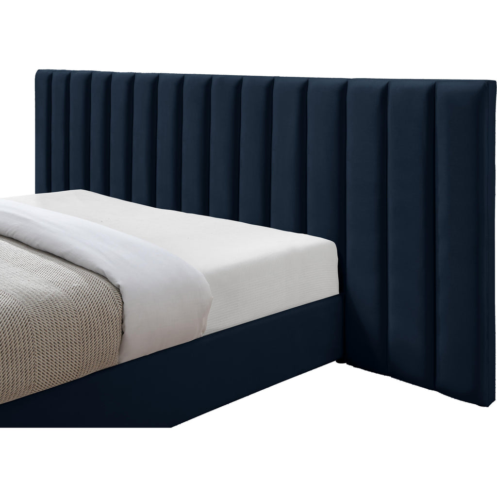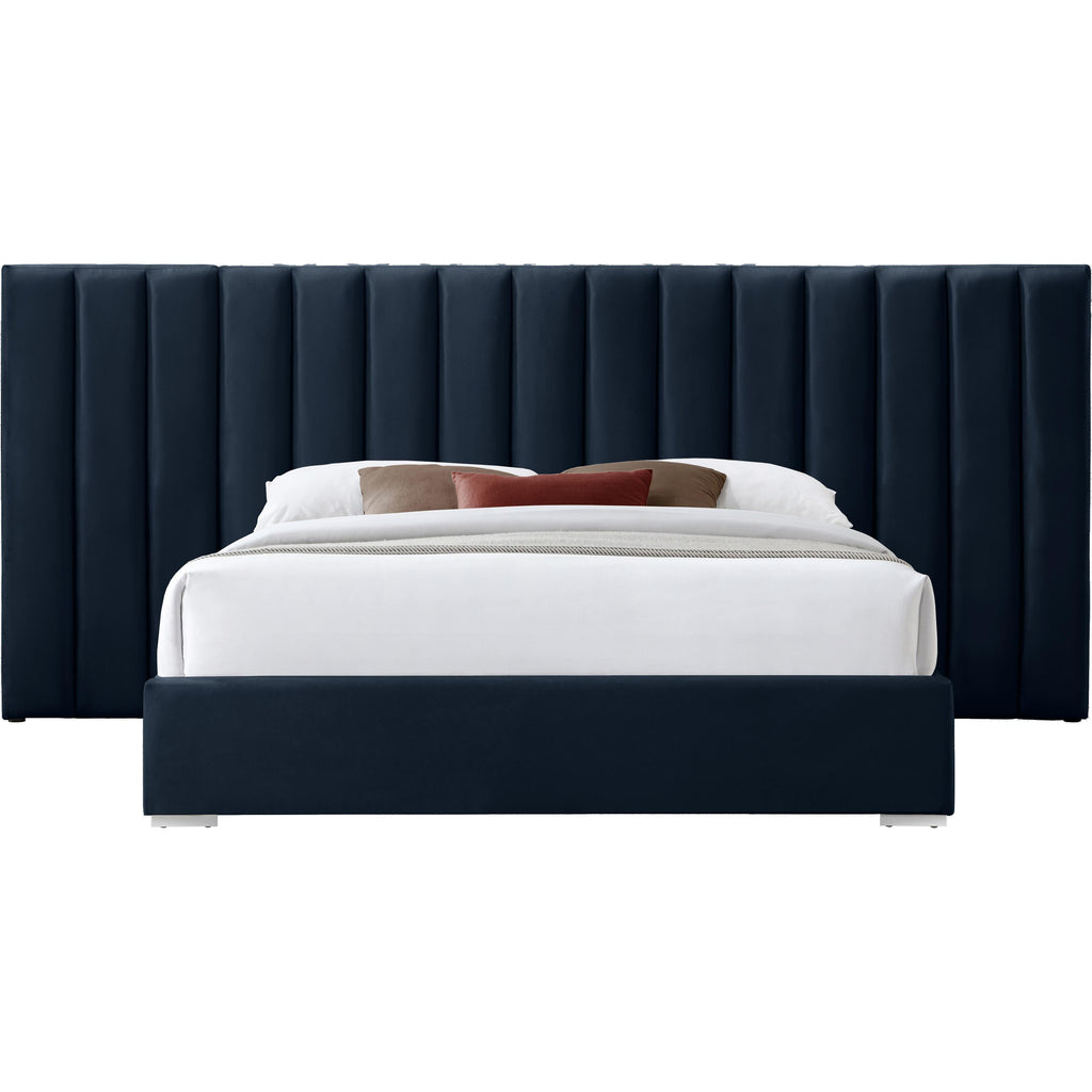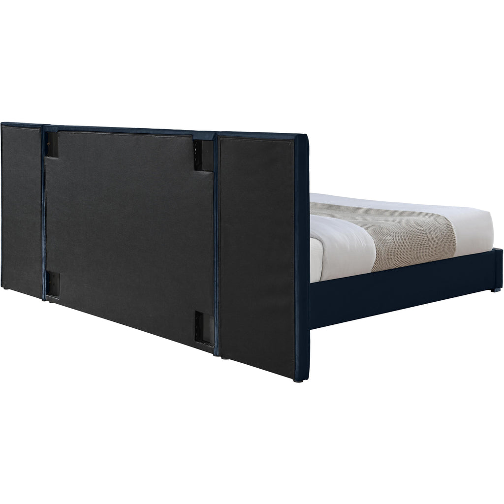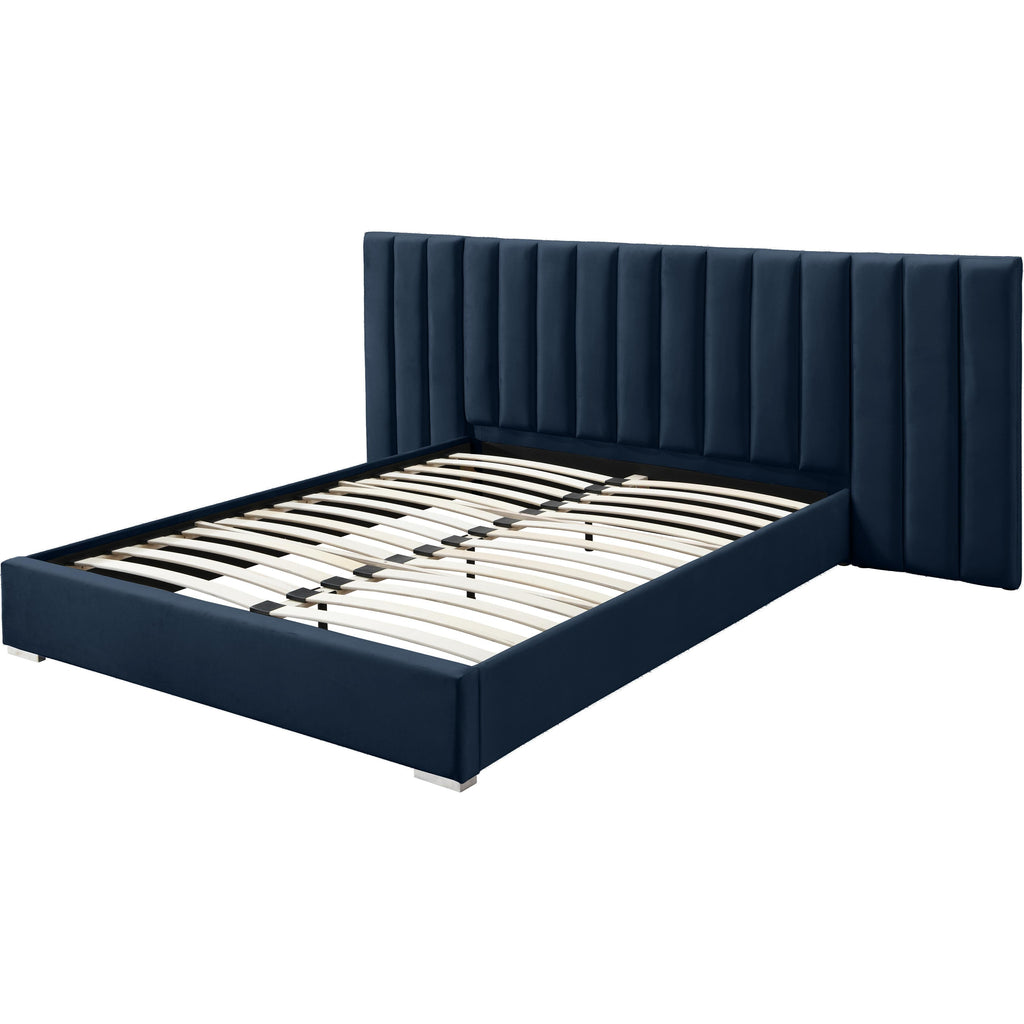 Sleep like royalty in this Pablo queen size velvet bed. This beautiful bed is destined to become the centerpiece of your bedroom sanctuary makeover with its elegantly eye-catching design and soft navy velvet upholstery. The bed rests on sturdy metal feet with a gleaming chrome finish, helping to ensure its strength and resilience for long-term use. Pair it with other items in the Pablo collection for a cohesive and coordinated look.a