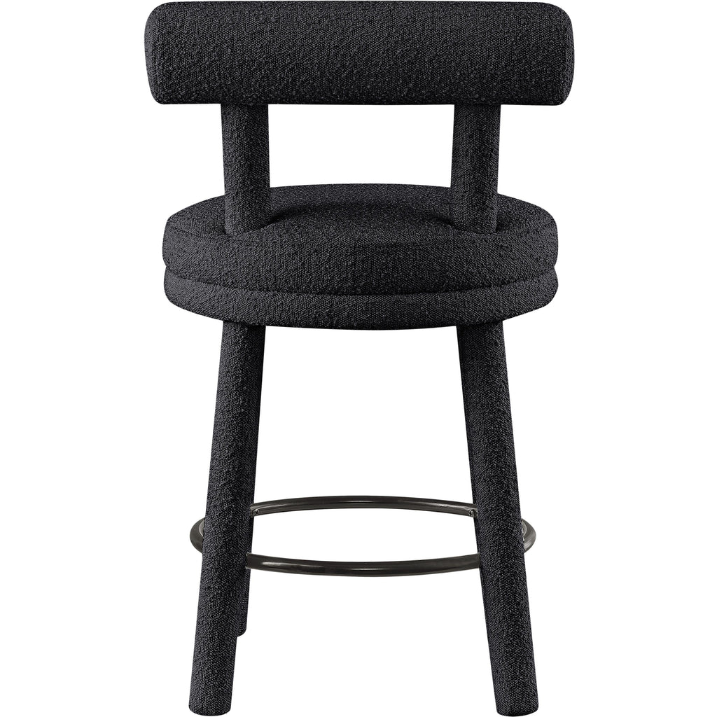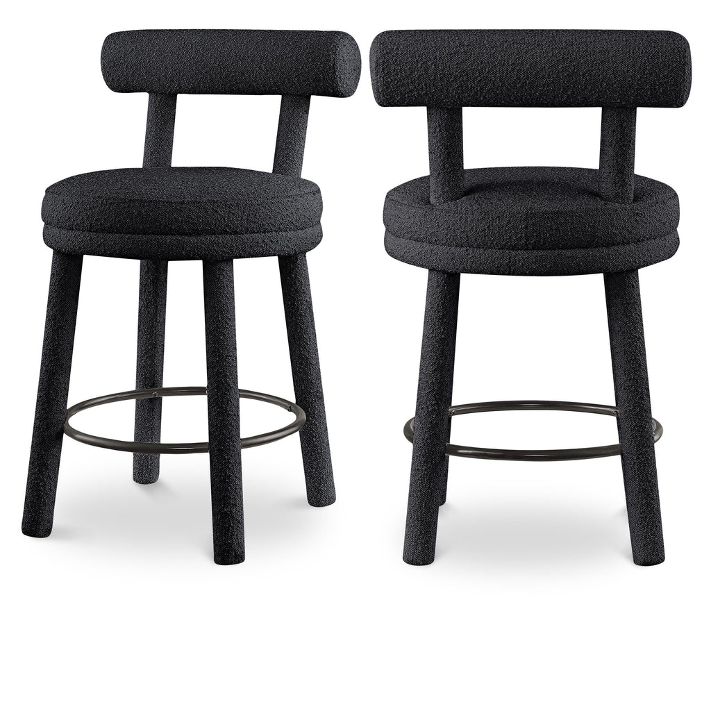 Make sure guests and family want to stay 'till closing time when you add these black Parlor boucle fabric bar/counter stools to your space. This set of two counter-height stools boasts rich black boucle fabric upholstery with rolled backs and plush seats for an inviting seating experience. These stools feature a solid wood frame and a convenient matte black metal footrest that encircles the bottom for resting your feet.