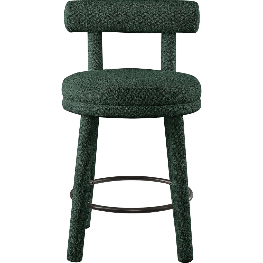 Make sure guests and family want to stay 'till closing time when you add these green Parlor boucle fabric bar/counter stools to your space. This set of two counter-height stools boasts rich green boucle fabric upholstery with rolled backs and plush seats for an inviting seating experience. These stools feature a solid wood frame and a convenient matte black metal footrest that encircles the bottom for resting your feet.