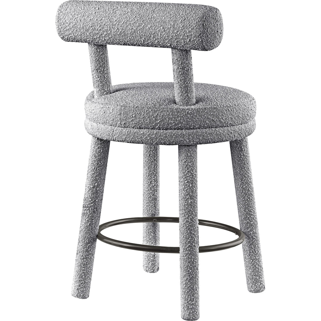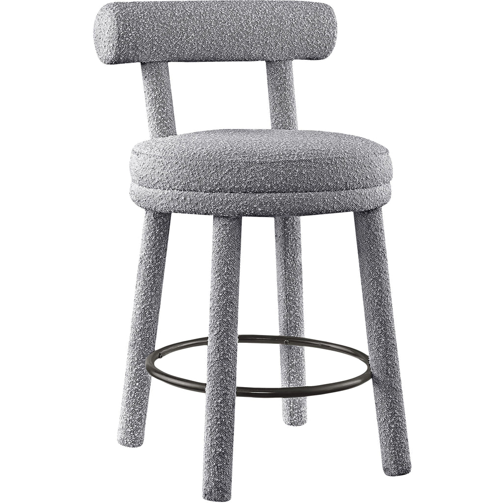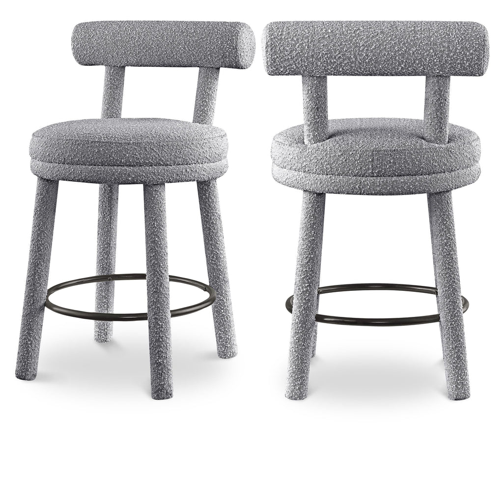 Make sure guests and family want to stay 'till closing time when you add these grey Parlor boucle fabric bar/counter stools to your space. This set of two counter-height stools boasts rich grey boucle fabric upholstery with rolled backs and plush seats for an inviting seating experience. These stools feature a solid wood frame and a convenient matte black metal footrest that encircles the bottom for resting your feet.