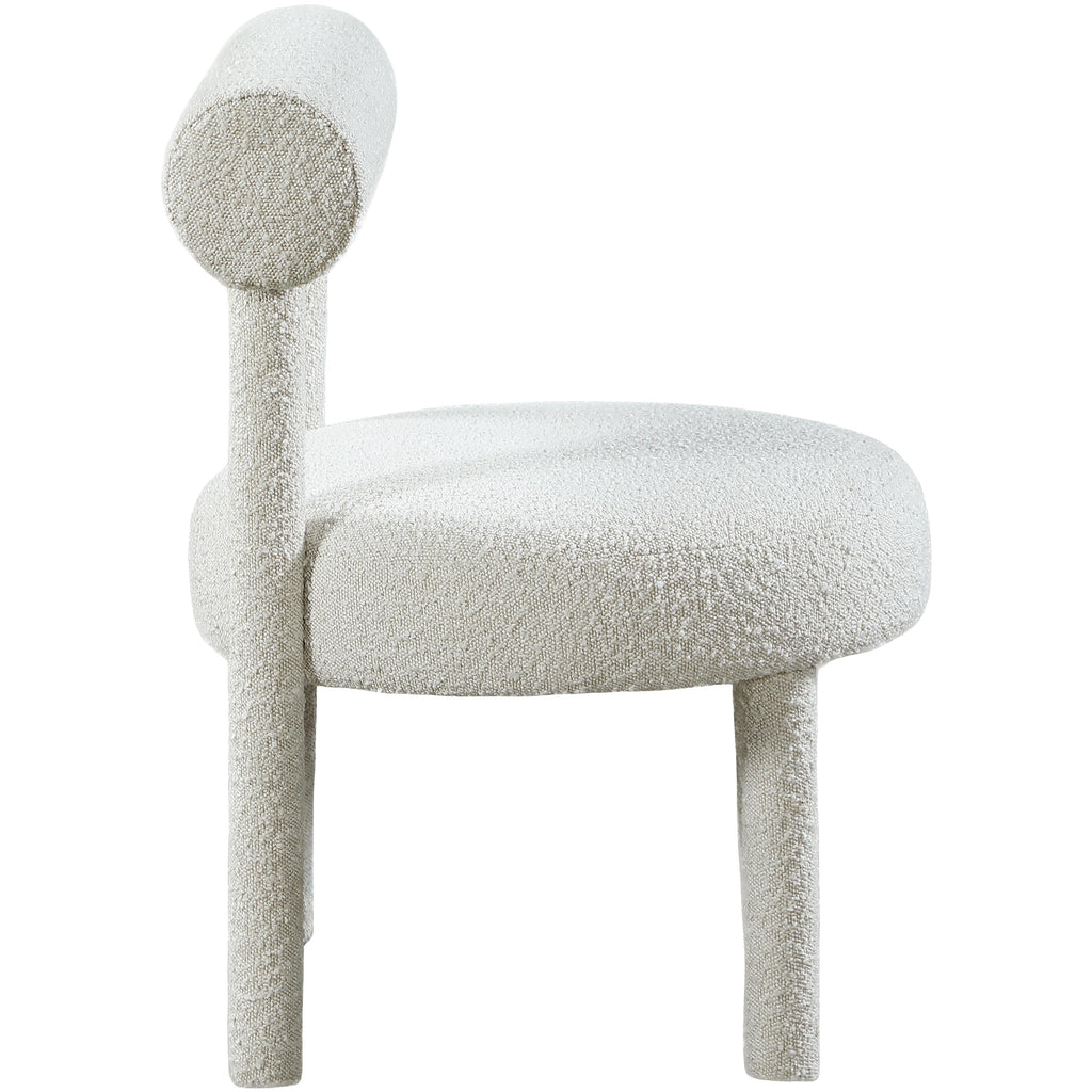 Give your home a contemporary makeover with this Parlor boucle fabric accent chair. The Parlor accent chair from Meridian Furniture features rich cream boucle fabric upholstery, providing you and your guests with utmost comfort. Its solid wood frame ensures sturdy construction, supporting just about anyone who wishes to kick back and have a seat. Its rounded design gives a chic, modern touch to any living space, making it a perfect addition to your furniture collection.