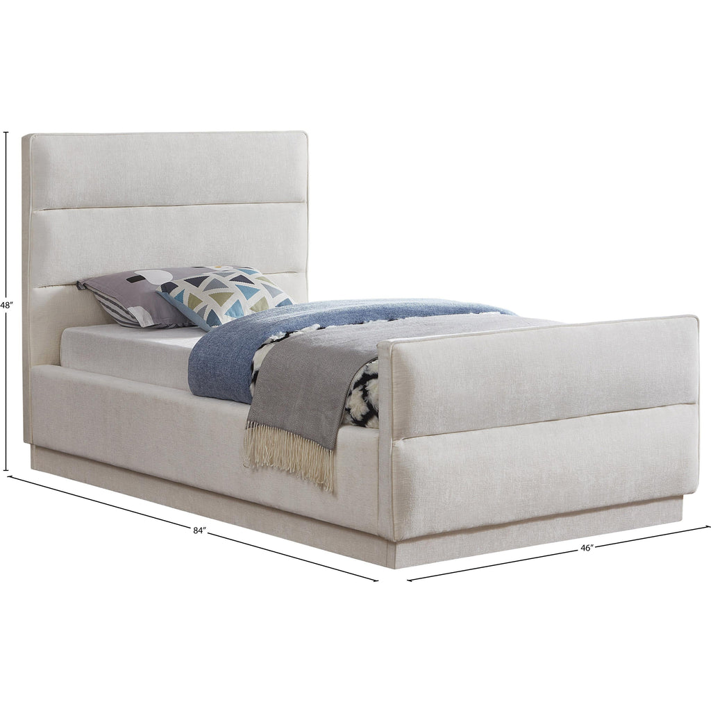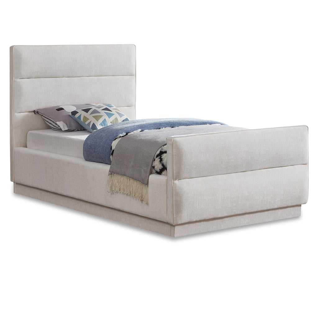 Embrace the essence of cozy sophistication with the Paxton Chenille Fabric Bed, a haven designed to elevate your sleep experience and enhance your bedroom's aesthetics. The bed is adorned in a luxurious rich cream chenille fabric, its soft texture inviting you to sink into its warmth. The subtle sheen of the chenille adds a touch of elegance, creating a timeless look that complements various decors. The headboard features a classic horizontal channel tufted design, adding visual interest and dimension to the bed. This sophisticated detail exudes a touch of vintage charm, making the Paxton a perfect fit for both traditional and contemporary spaces.