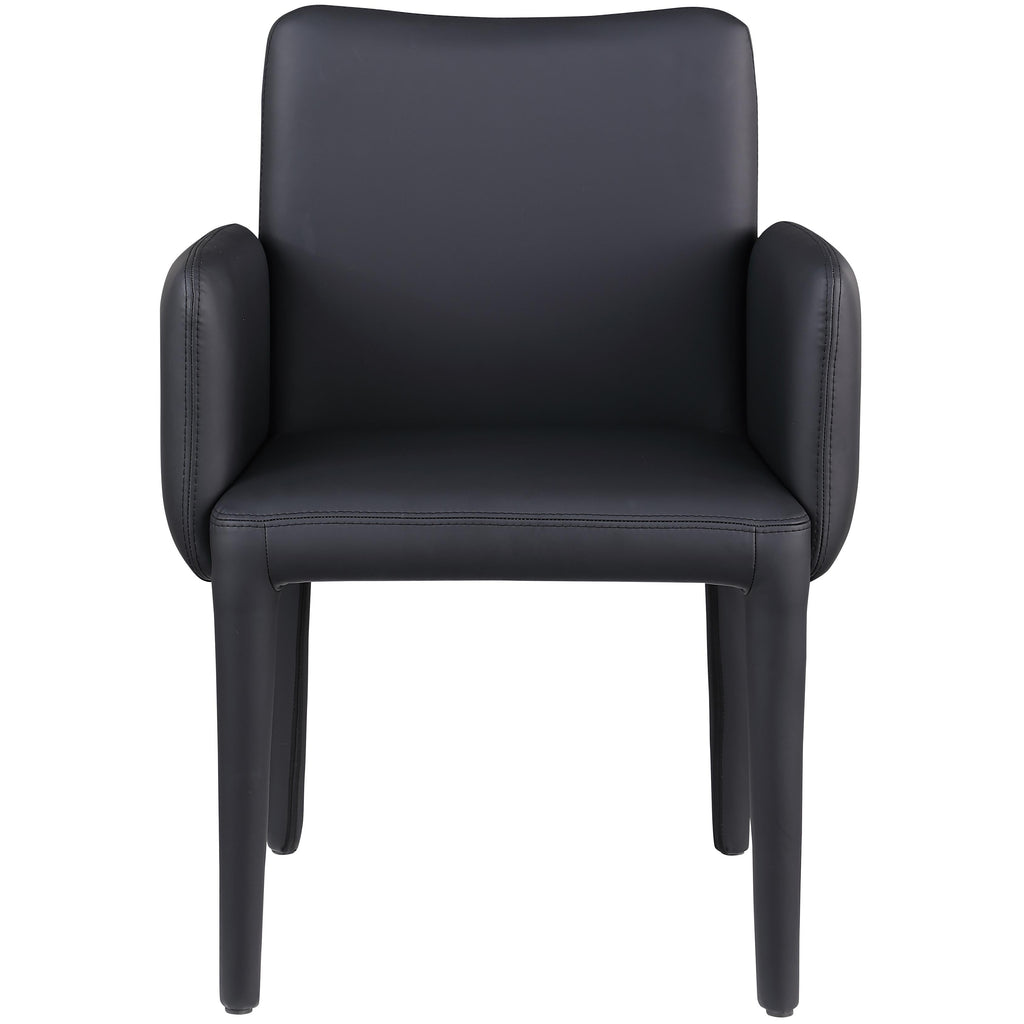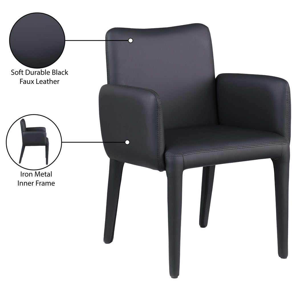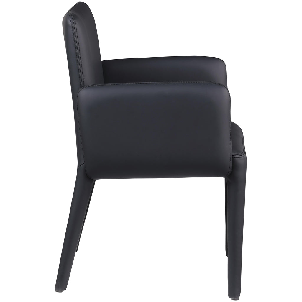 Make dining a sophisticated occasion when you add this Pelle vegan leather dining chair to the mix. The beautiful fully upholstered dining chair features soft, durable black vegan leather from top to bottom, giving you a high-class look without the expense and the maintenance needs of real leather. An all-iron metal inner frame keeps the chair sturdy and stout, making it a great choice for your busy household.