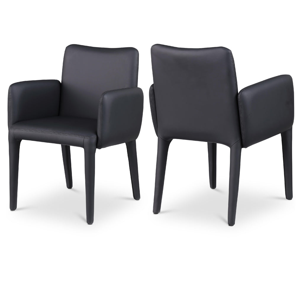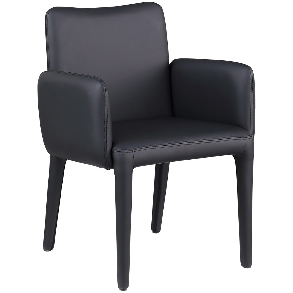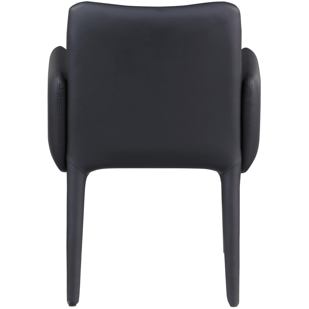 Make dining a sophisticated occasion when you add this Pelle vegan leather dining chair to the mix. The beautiful fully upholstered dining chair features soft, durable black vegan leather from top to bottom, giving you a high-class look without the expense and the maintenance needs of real leather. An all-iron metal inner frame keeps the chair sturdy and stout, making it a great choice for your busy household.
