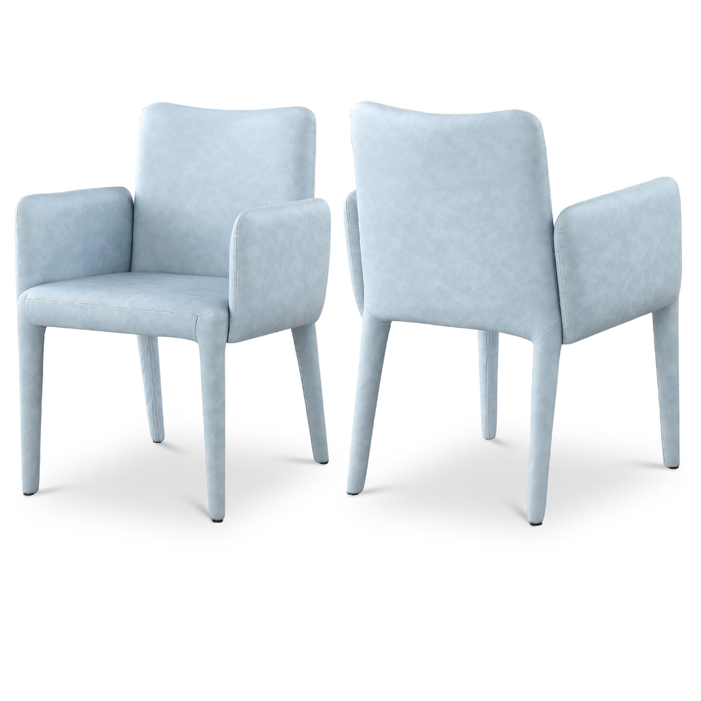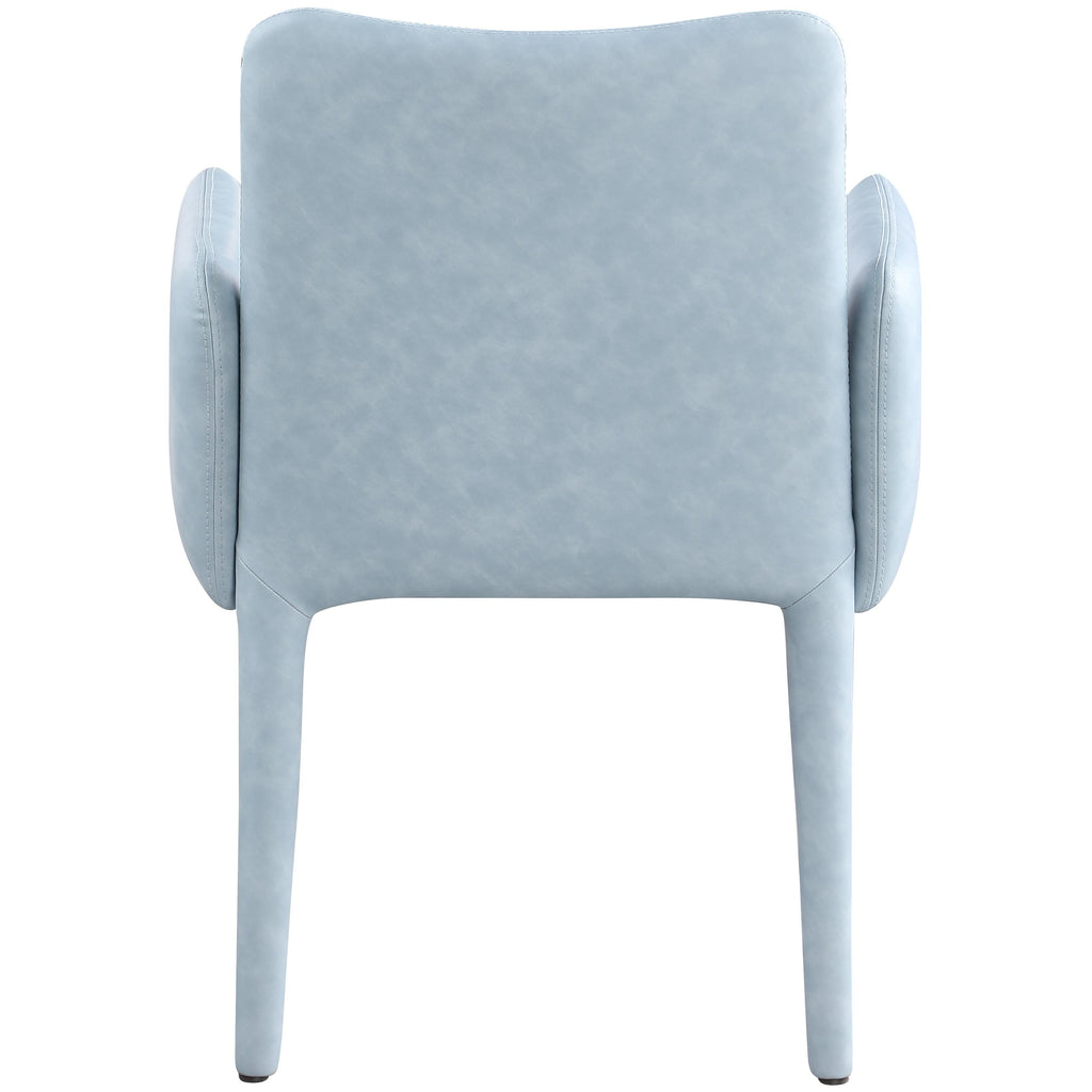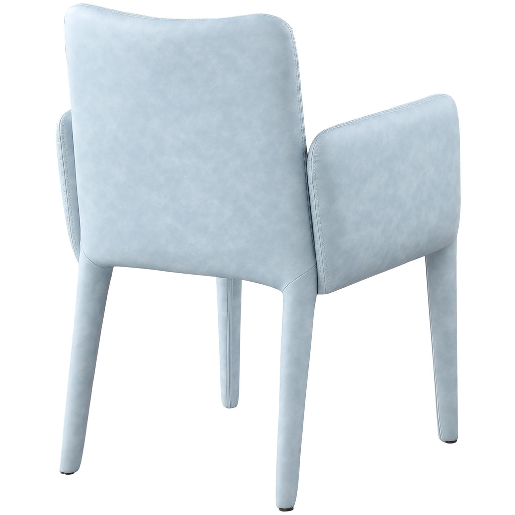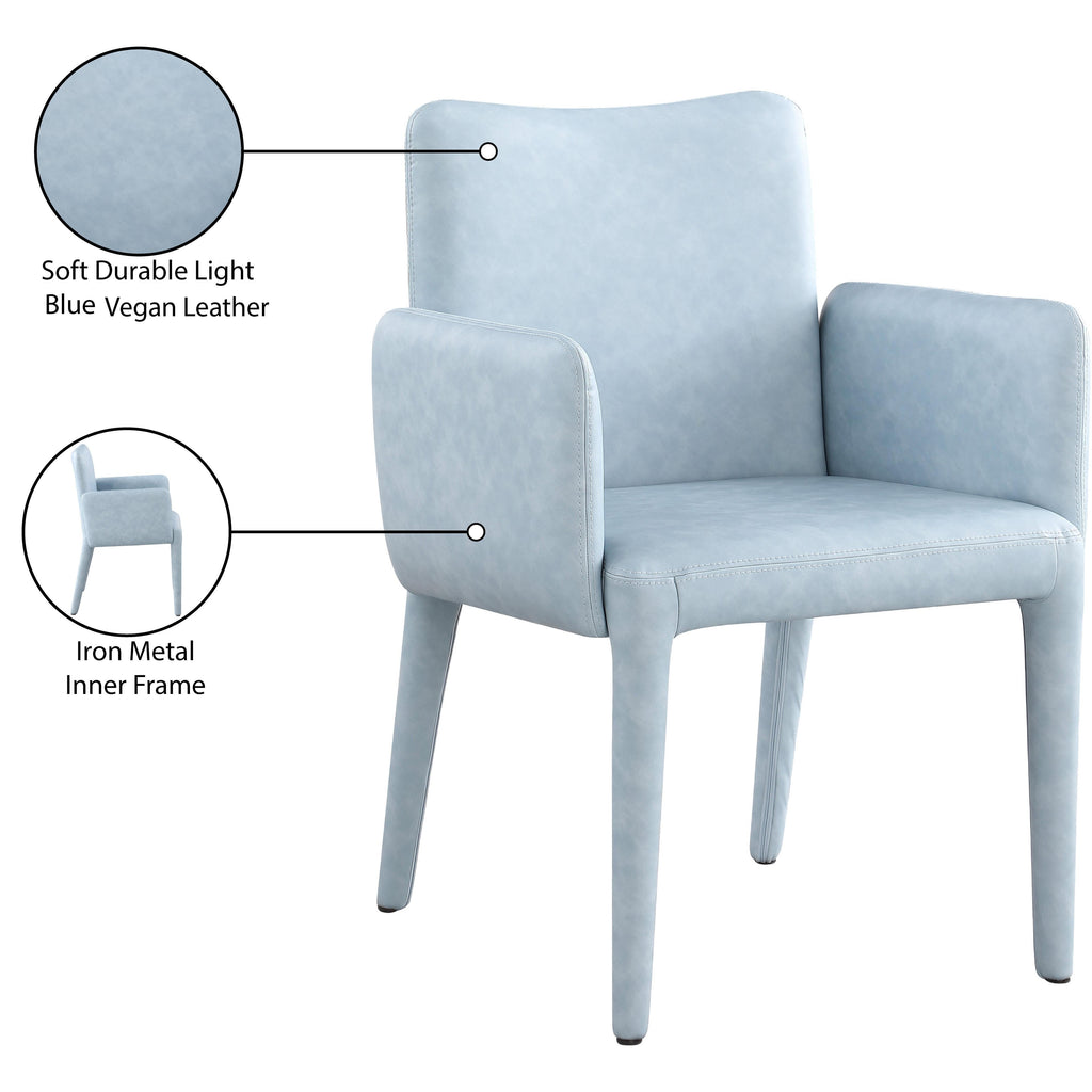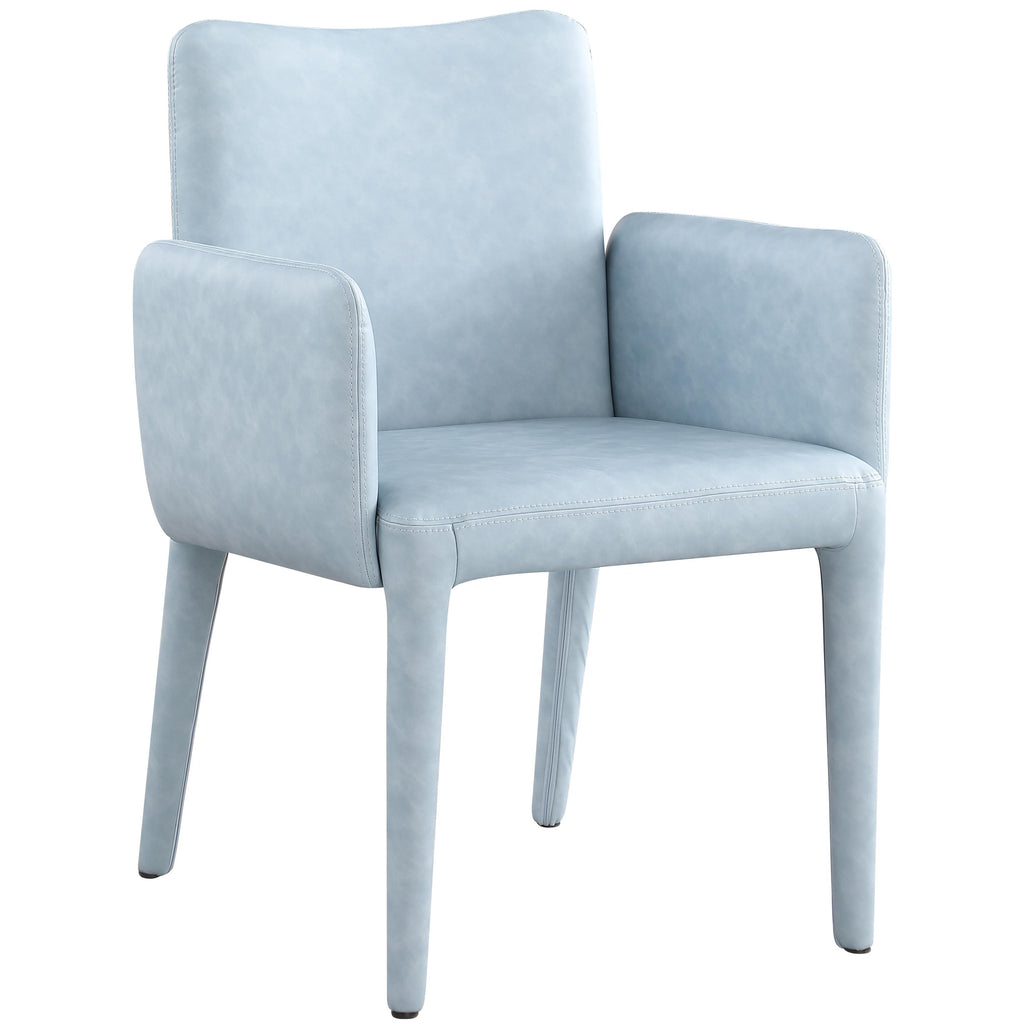 Make dining a sophisticated occasion when you add this Pelle vegan leather dining chair to the mix. The beautiful fully upholstered dining chair features soft, durable light blue vegan leather from top to bottom, giving you a high-class look without the expense and the maintenance needs of real leather. An all-iron metal inner frame keeps the chair sturdy and stout, making it a great choice for your busy household.