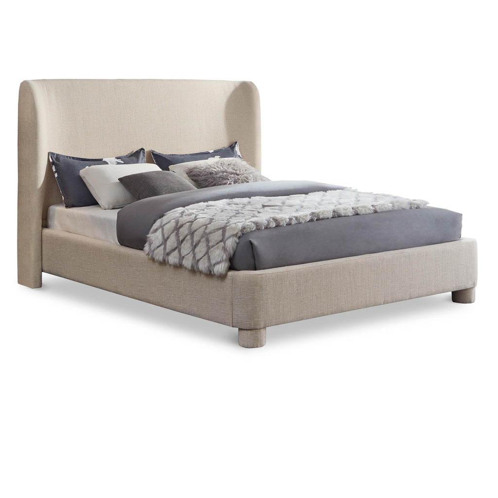 Breathe new life into your bedroom decor with the Penny Polyester Fabric Queen Bed. This stunning bed is upholstered in a luxurious beige linen textured fabric with a beautiful two-tone beige and white weave, adding a touch of elegance to your space. The curved headboard provides a comfortable and supportive backrest while adding a stylish focal point to your bedroom decor. Upgrade your sleeping experience with this fully upholstered bed and indulge in a peaceful night's sleep.