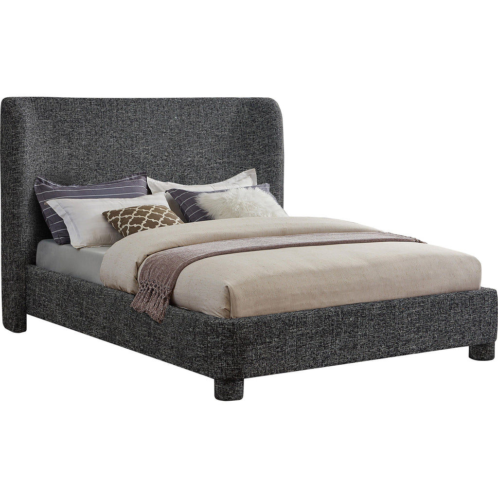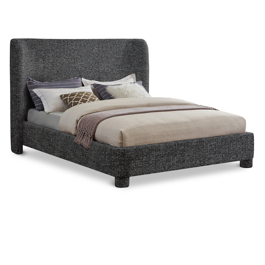 Breathe new life into your bedroom decor with the Penny Polyester Fabric Queen Bed. This stunning bed is upholstered in a luxurious black linen textured fabric with a beautiful two-tone black and white weave, adding a touch of elegance to your space. The curved headboard provides a comfortable and supportive backrest while adding a stylish focal point to your bedroom decor. Upgrade your sleeping experience with this fully upholstered bed and indulge in a peaceful night's sleep.