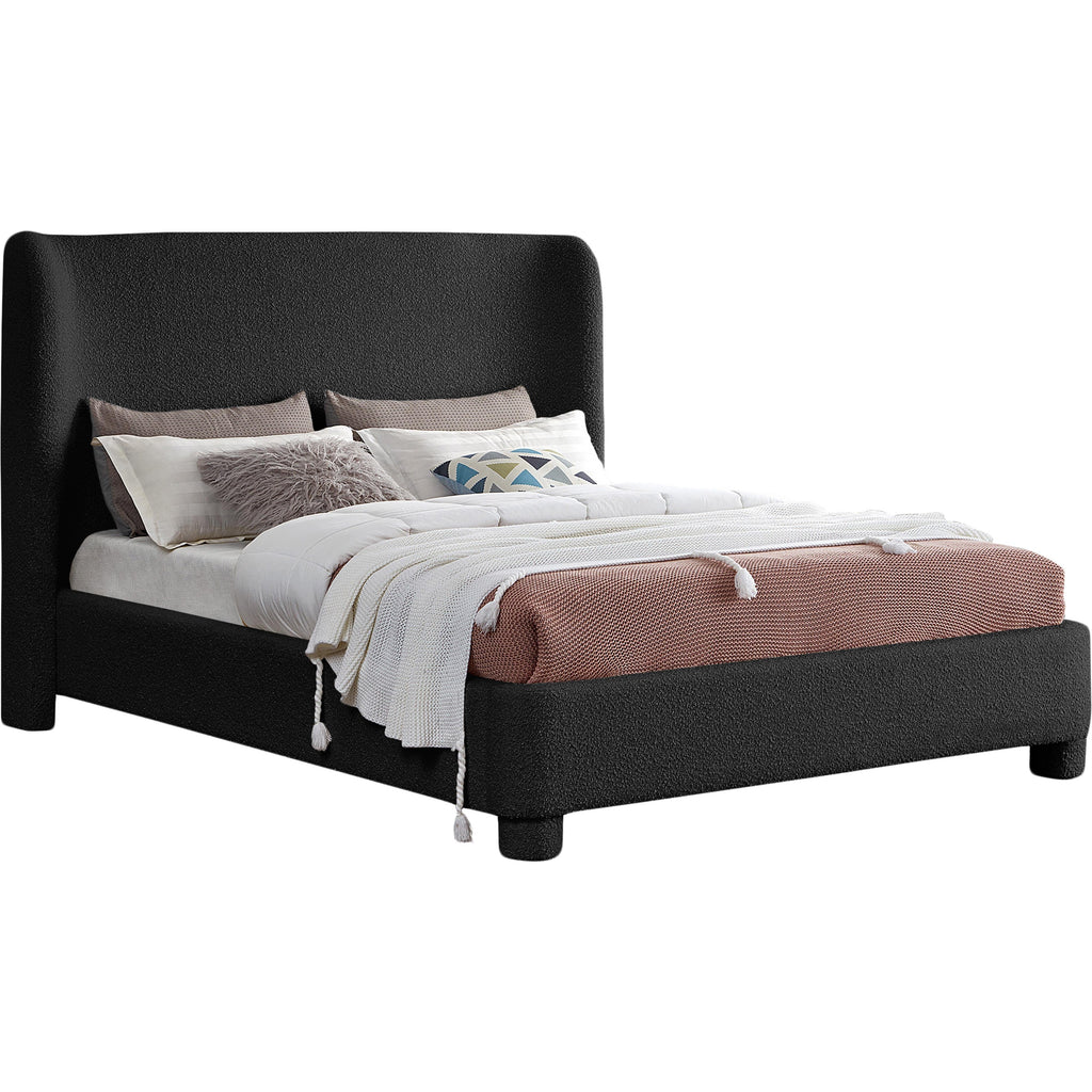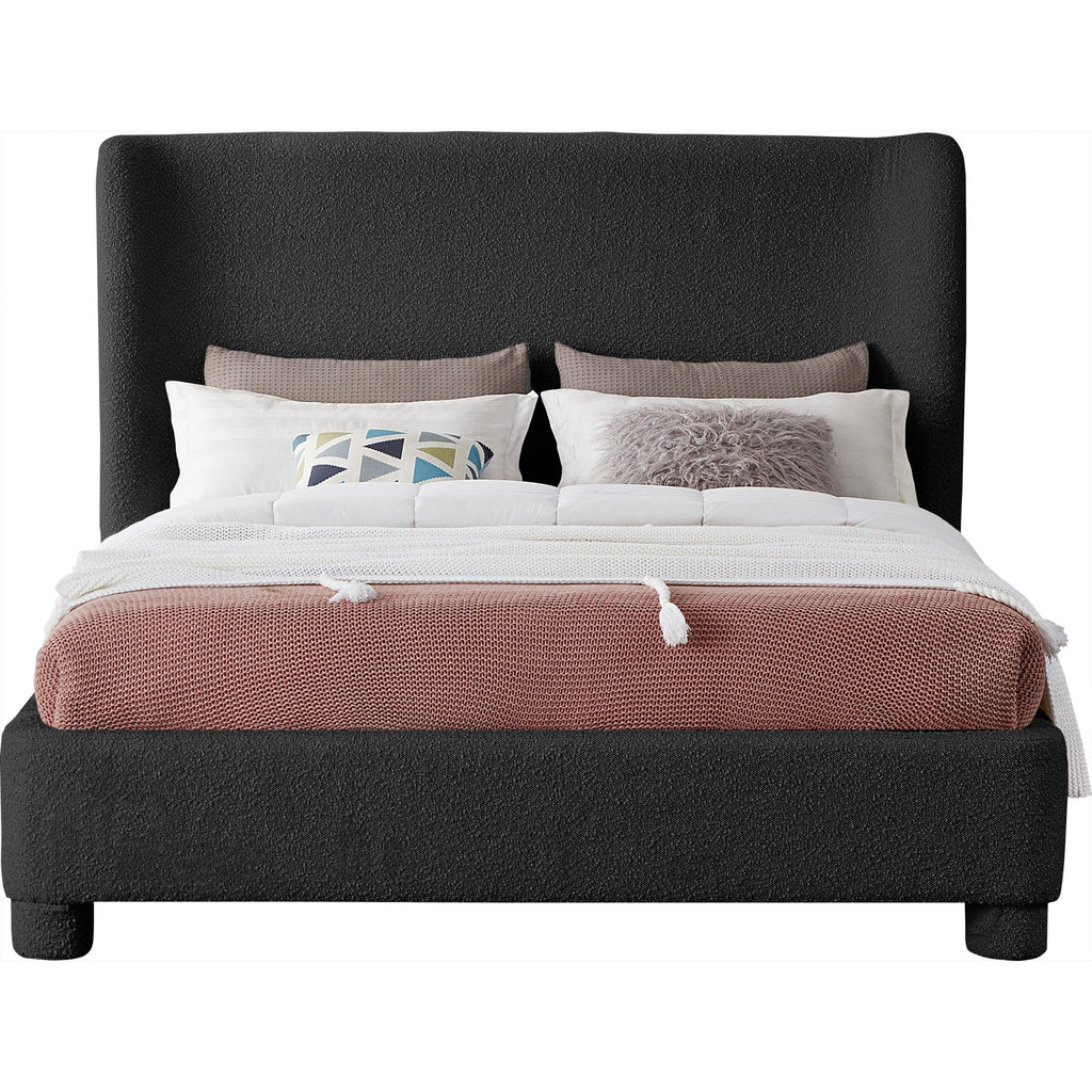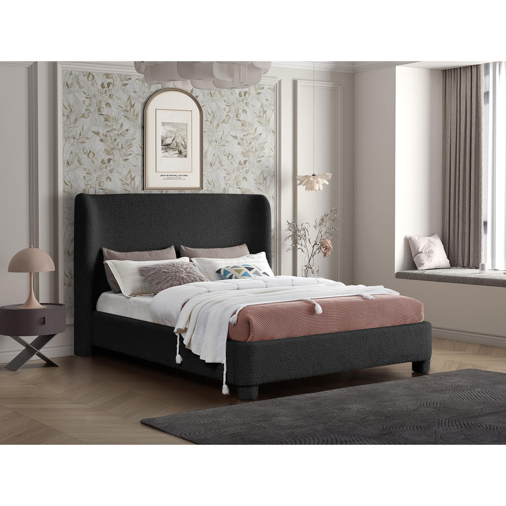 Breathe new life into your bedroom decor with the Penny Boucle Fabric Queen Bed. This stunning bed is upholstered in a luxurious black boucle textured fabric, adding a touch of elegance to your space. The curved headboard provides a comfortable and supportive backrest while adding a stylish focal point to your bedroom decor. Upgrade your sleeping experience with this fully upholstered bed and indulge in a peaceful night's sleep.