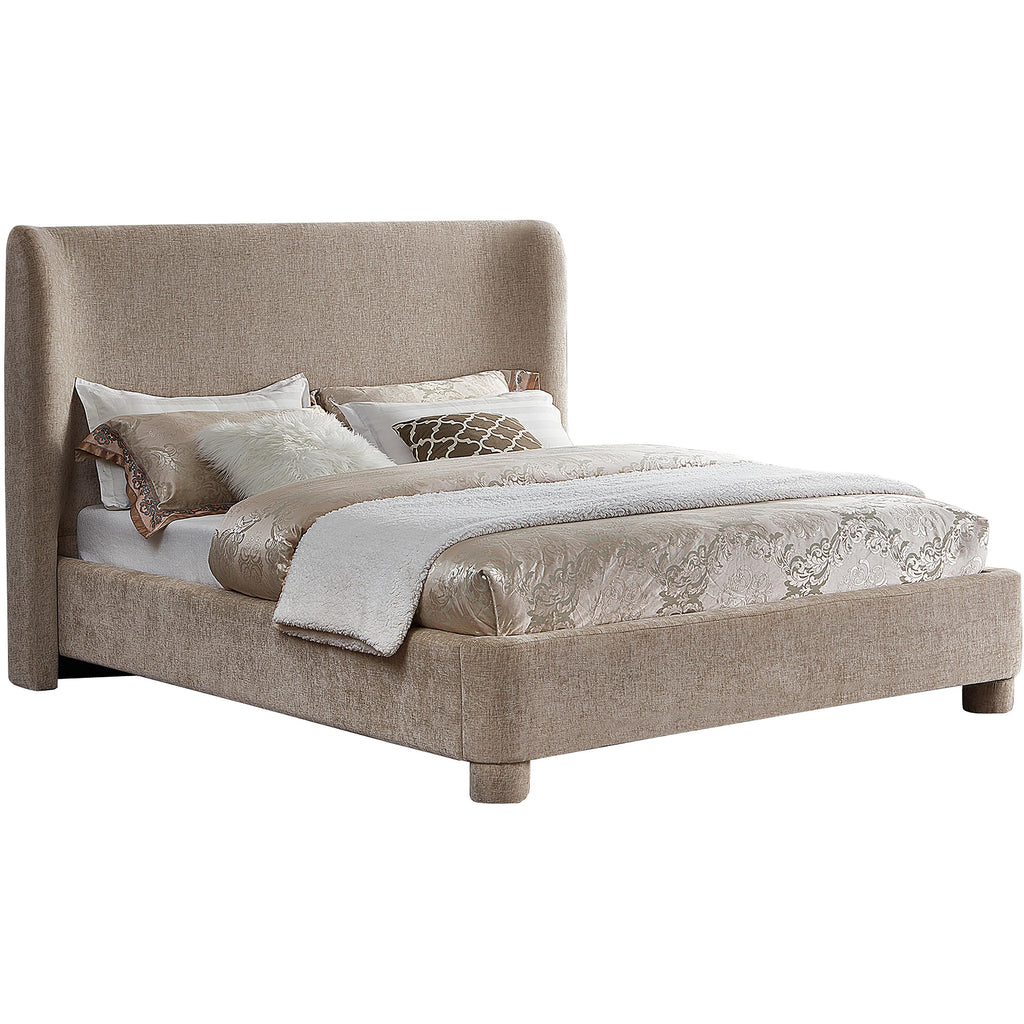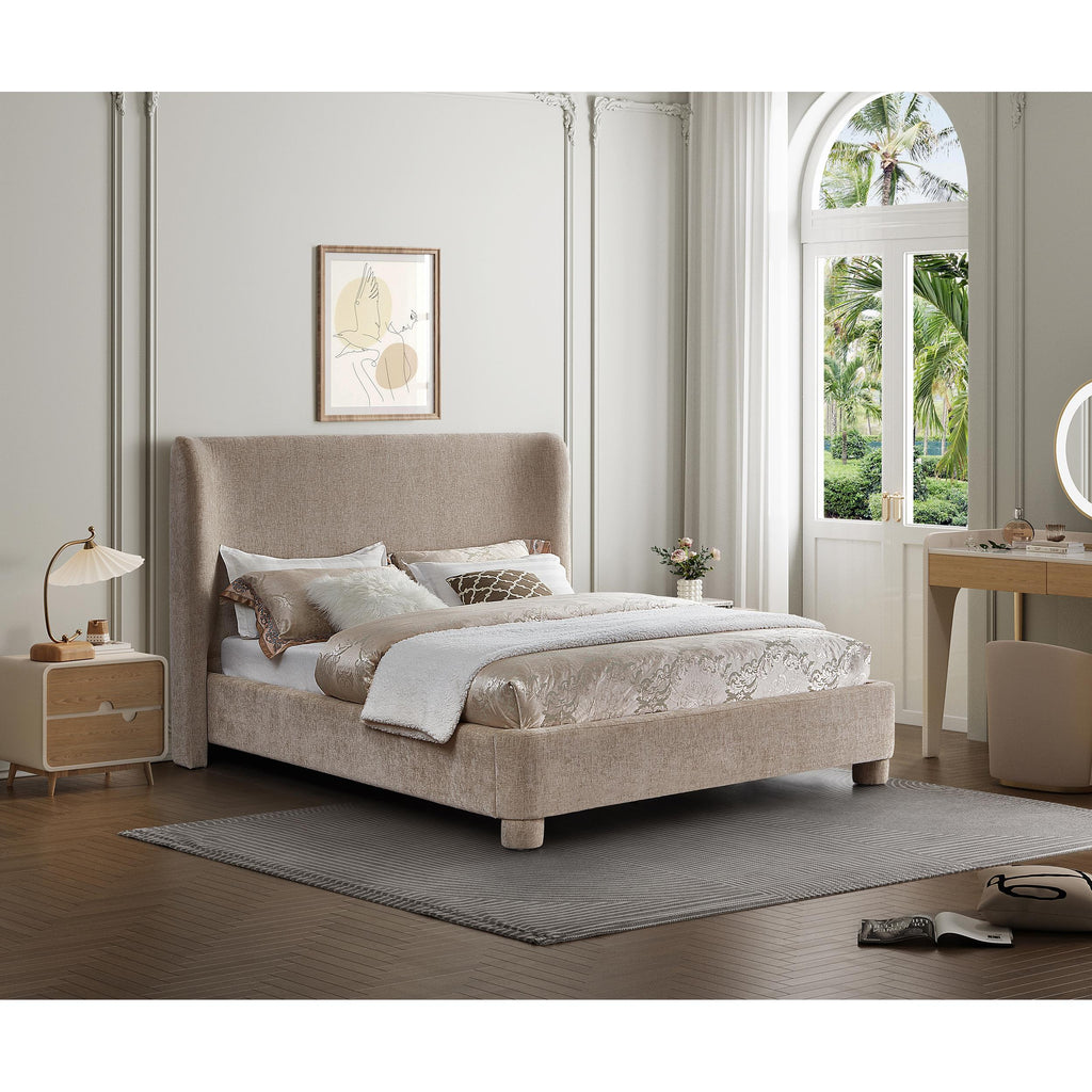 Give your bedroom an instant makeover with this beige Penny chenille fabric bed. A fusion of style and comfort, this queen-size bed comes upholstered in rich beige chenille fabric for a charming look and has an extra-high, curved headboard for optimal support while you read or watch TV. A chic and functional addition to your bedroom, this handsome bed is a true showstopper from every angle.