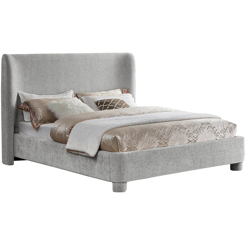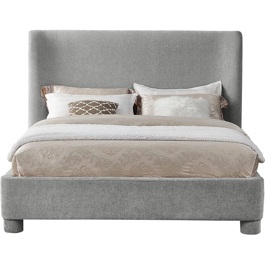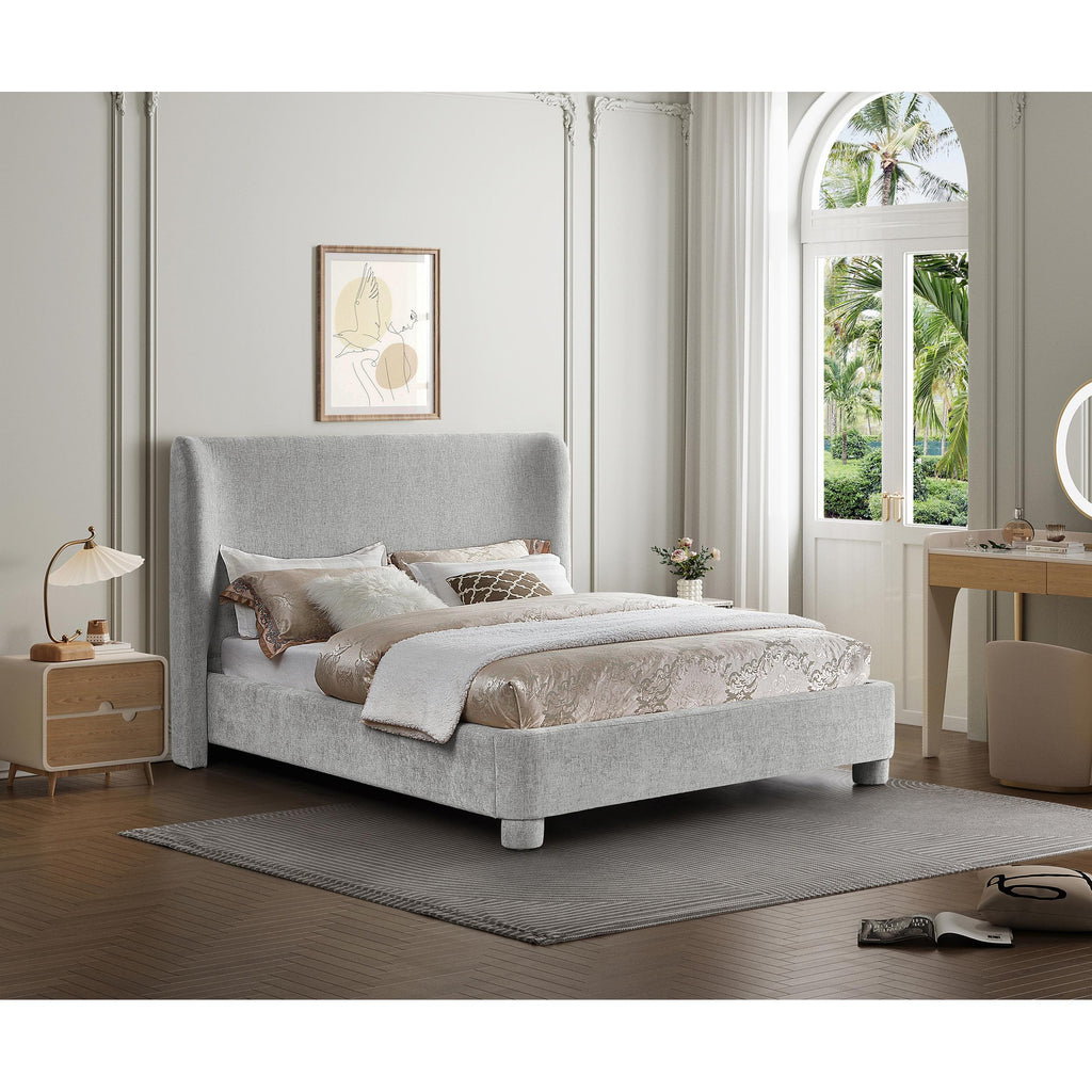 Give your bedroom an instant makeover with this grey Penny chenille fabric bed. A fusion of style and comfort, this queen-size bed comes upholstered in rich grey chenille fabric for a charming look and has an extra-high, curved headboard for optimal support while you read or watch TV. A chic and functional addition to your bedroom, this handsome bed is a true showstopper from every angle.