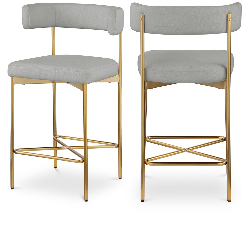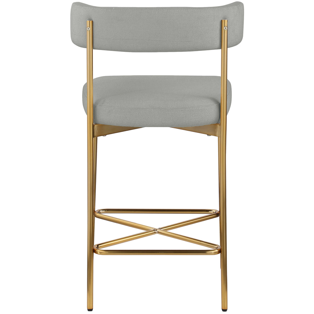 Bring a simple yet elegant touch to your dining area or bar with these Rivage Linen Textured Fabric Bar / Counter Stools. These stools are upholstered in a luxurious, light grey linen-textured fabric that is not only durable but also adds a touch of elegance to any space. The brushed gold metal frame adds to the stools' longevity and makes them a timeless addition to your home. With a perfectly curved back, these stools provide ultimate comfort that will allow you to sit and enjoy your meals or drinks with ease.