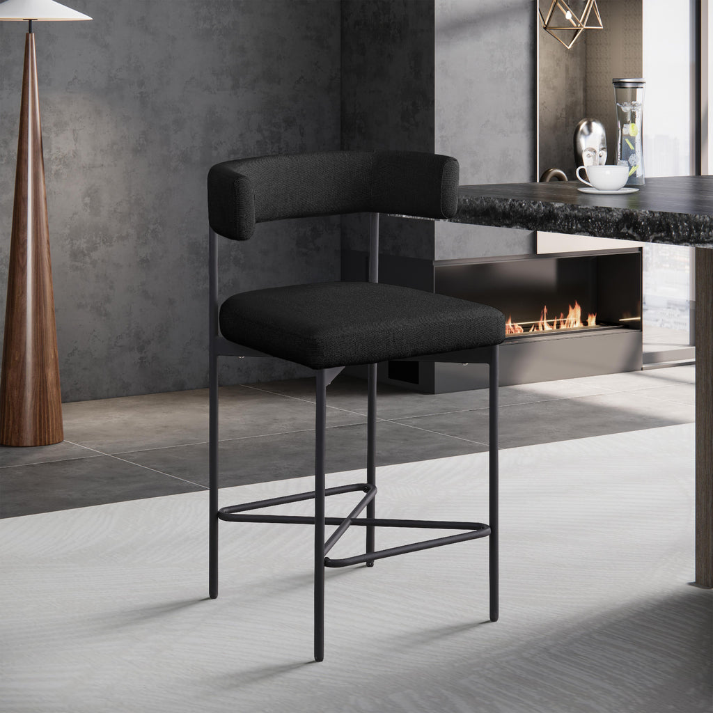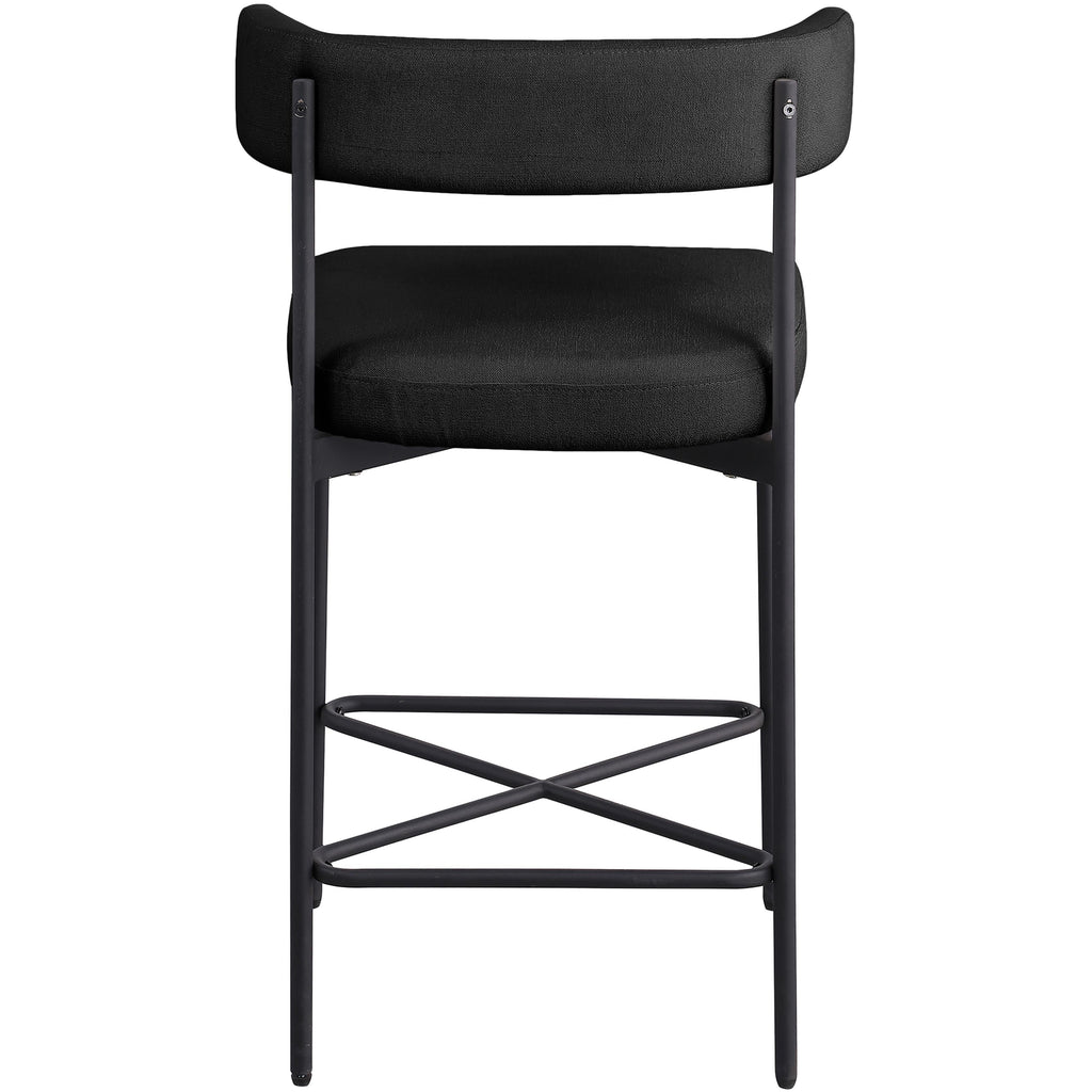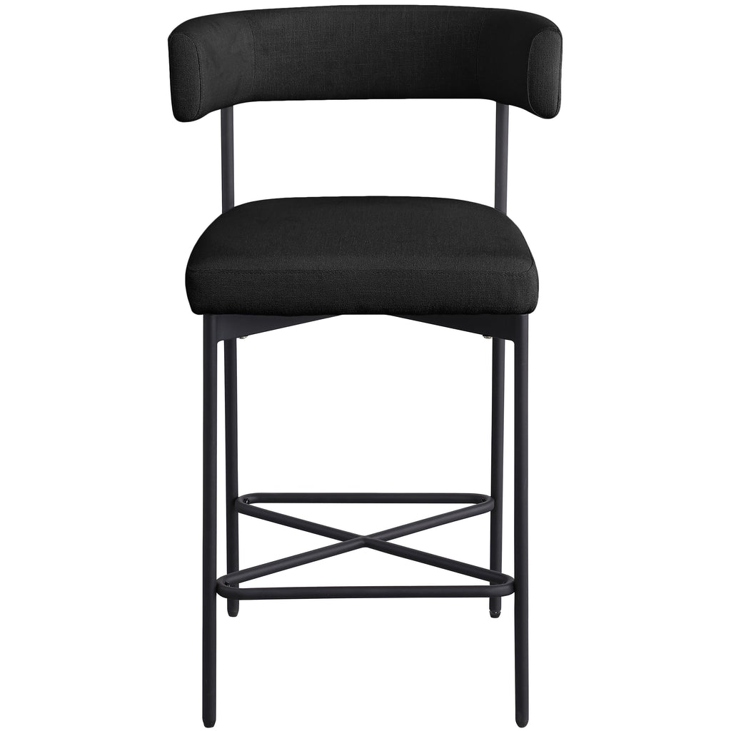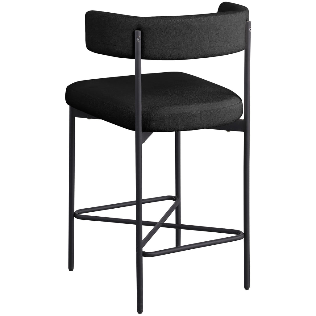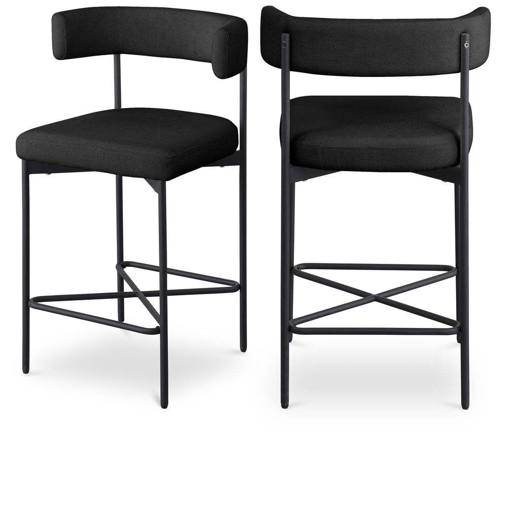 Bring a simple yet elegant touch to your dining area or bar with these Rivage Linen Textured Fabric Bar / Counter Stools. These stools are upholstered in a luxurious, black linen-textured fabric that is not only durable but also adds a touch of elegance to any space. The matte black metal frame adds to the stools' longevity and makes them a timeless addition to your home. With a perfectly curved back, these stools provide ultimate comfort that will allow you to sit and enjoy your meals or drinks with ease.