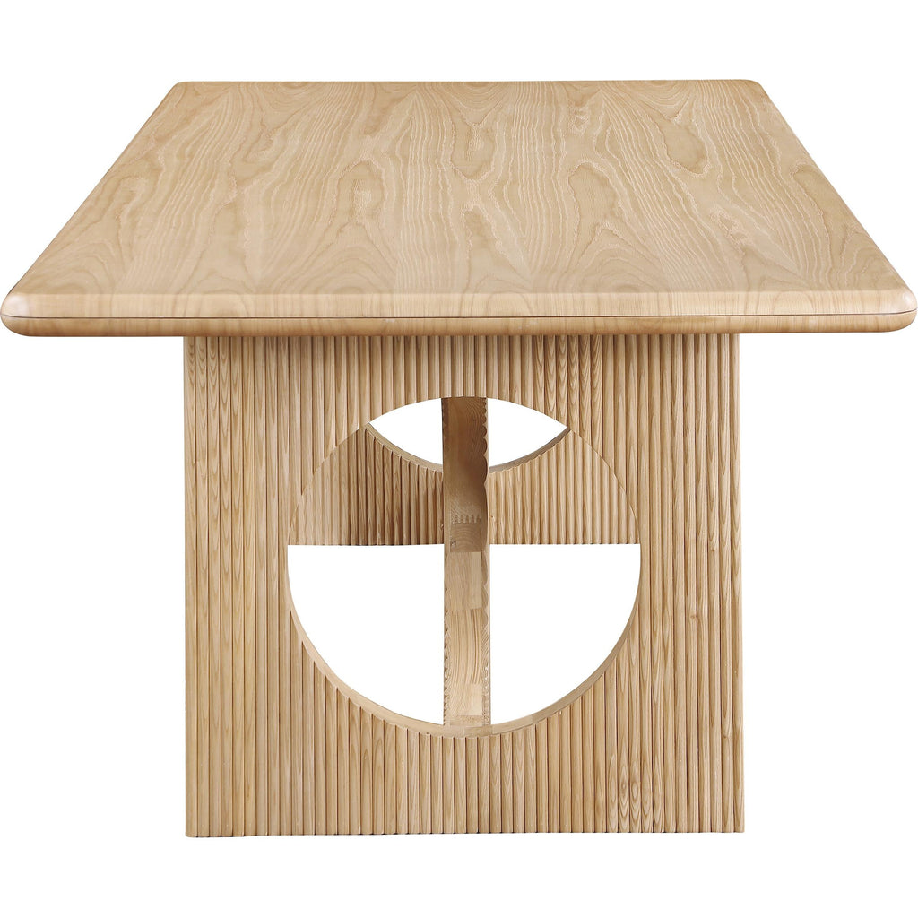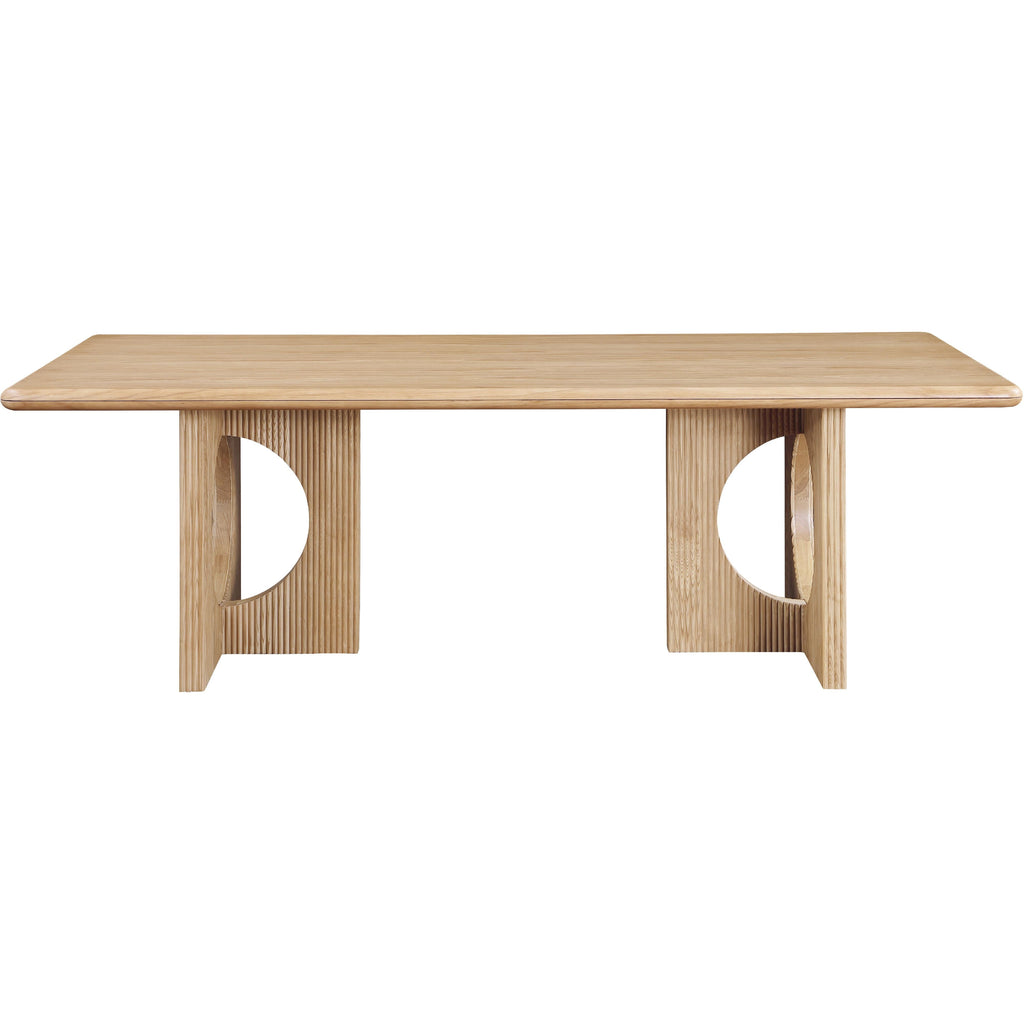 The Rivas Dining Table is a stunning piece of furniture that brings together the classic beauty of mid-century design and the sleek modern look. Crafted with ash veneer, this rectangular table boasts a rich natural oak finish that is both elegant and durable. The fluted base is a unique feature that adds an element of distinction, making it a perfect addition to any room. Its eye-catching design is sure to draw attention and make a statement in your home.