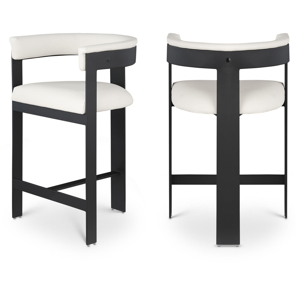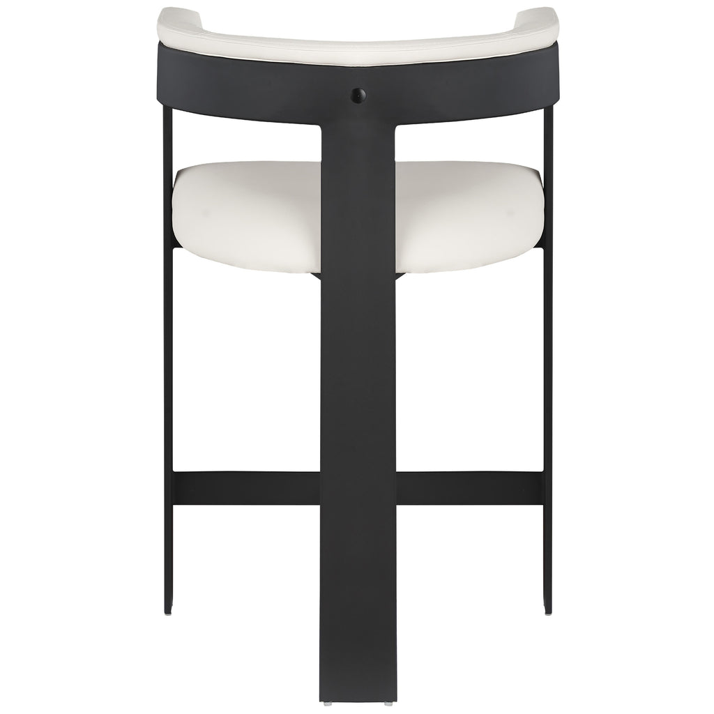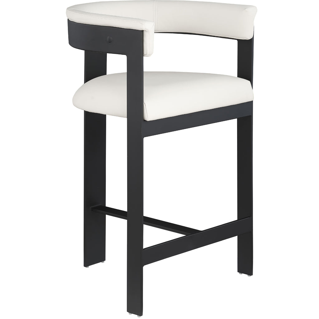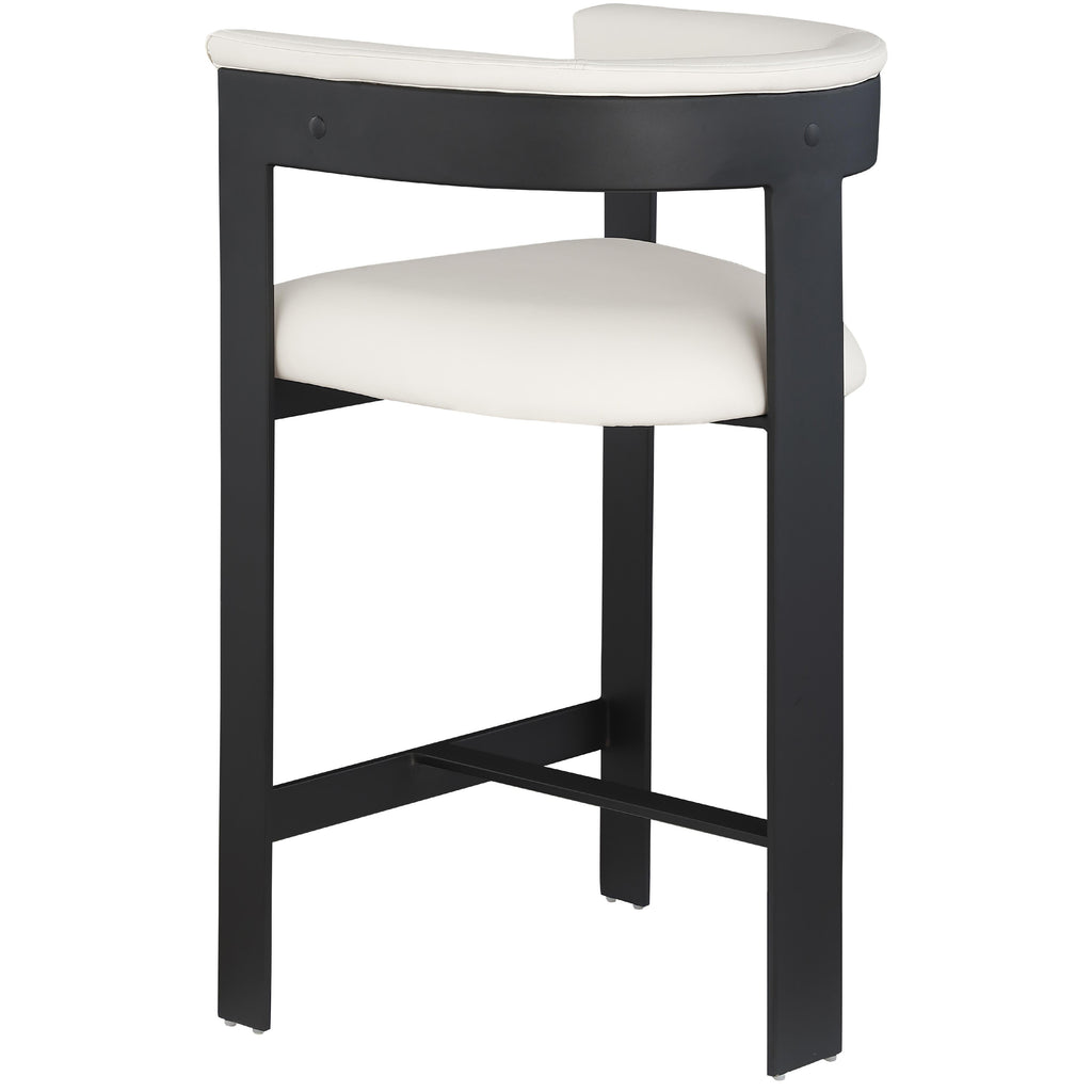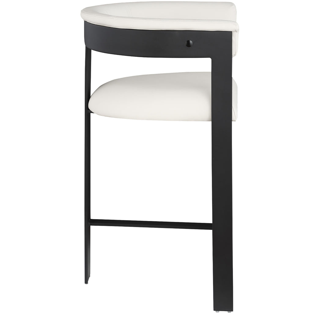 Update your kitchen counter or home bar with this cream Romeo vegan leather bar/counter stool. It boasts a soft cream vegan leather seat and a curved back for comfortable and contemporary seating. The matte black metal frame ensures sturdiness and a sleek aesthetic, impressing family and guests alike. With its modern design, this stool effortlessly complements your space, making it a superb addition to your space.