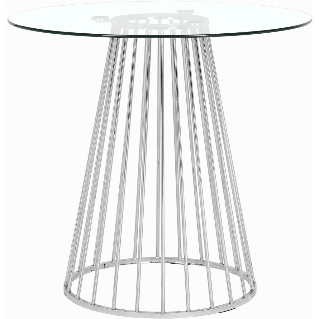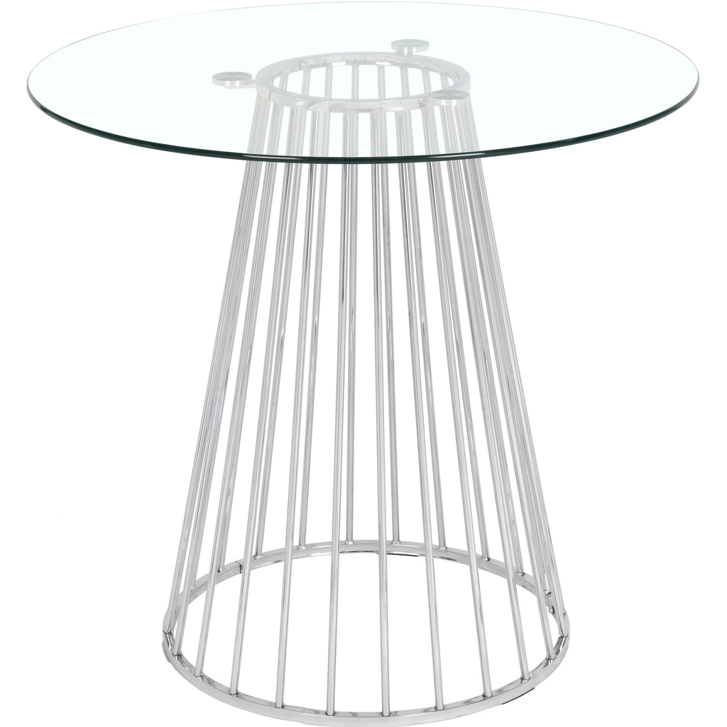 Add a bold touch to your dining area with this chic Gio counter height table. Featuring a round, clear tempered glass tabletop and a polished chrome metal base with a wired contemporary design, this dining table transforms your dining space into a stylish haven. At 40 inches round and 37 inches high, this stunning table offers ample space for you to gather around and enjoy a family meal, while adding drama to your existing modern decor.