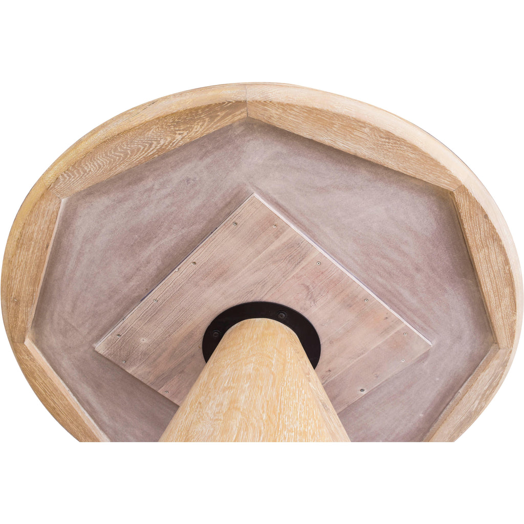 Give your home a rustic look with this Linette white oak dining table. Crafted from solid white oak wood, this table is sturdy enough to serve your dining area for years to come. A cerused brushed white oak finish gives the table a natural look perfect for any down-home living space. Its tapered base provides an elegant and sturdy foundation for its round tabletop, ensuring there is lots of leg space underneath the table.