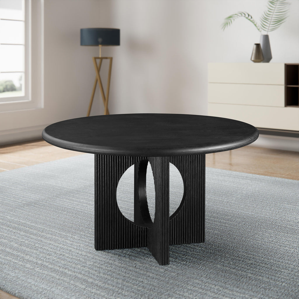 The Rivas Dining Table is a stunning piece of furniture that brings together the classic beauty of mid-century design and the sleek modern look. Crafted with ash veneer, the round table boasts a rich black finish that is both elegant and durable. The fluted base is a unique feature that adds an element of distinction, making it a perfect addition to any room. Its eye-catching design is sure to draw attention and make a statement in your home.