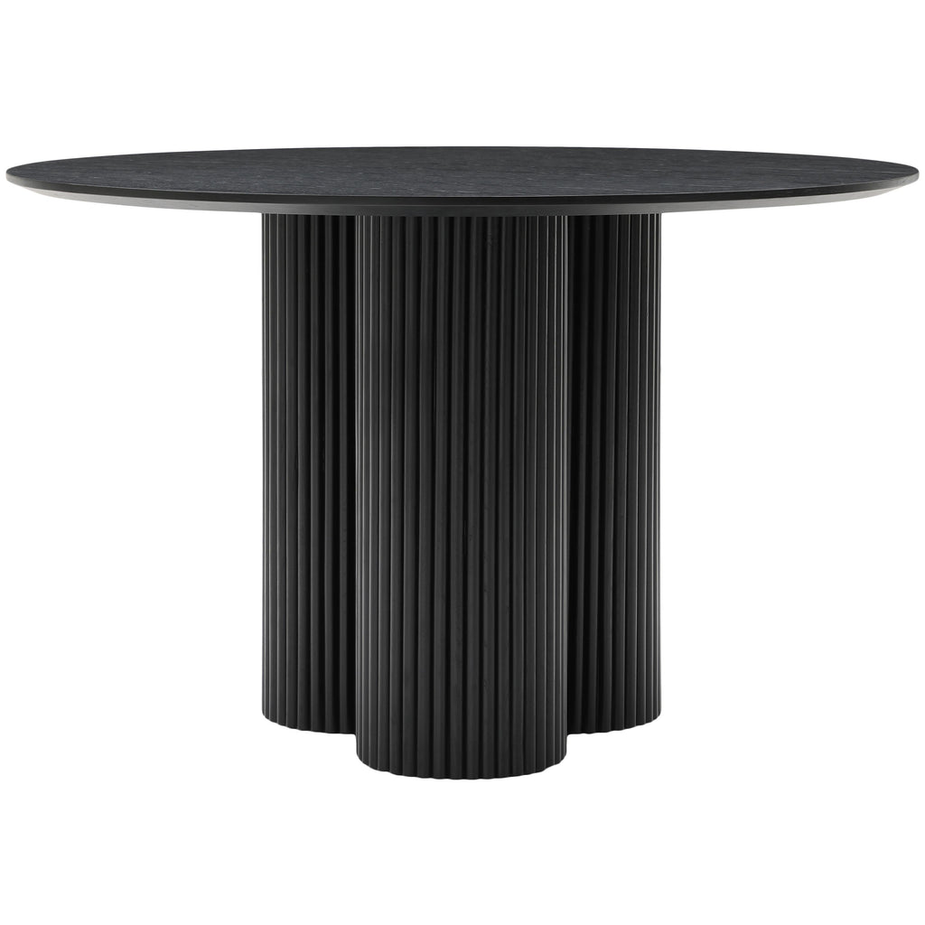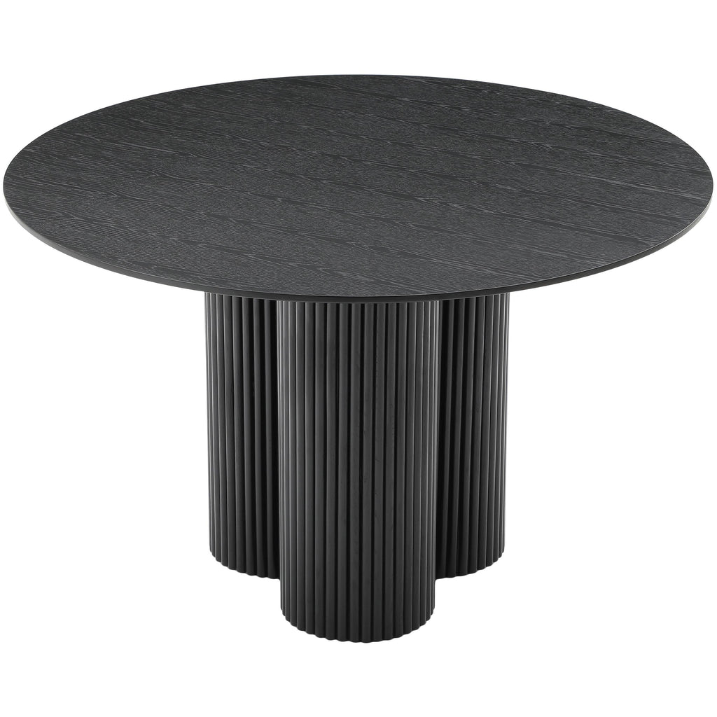 Gather your favorite peeps around this Simba dining table. A sleek shade of black, this handsome mid-century designed table has a modish look that's perfect for both contemporary and traditional dining rooms. The black oak veneer table top measures 48 inches, giving you oodles of room for place settings and lots of elbowroom for dinner guests. Made from ash wood and wood products, this sturdy table has a solid wood fluted base for added aesthetics.