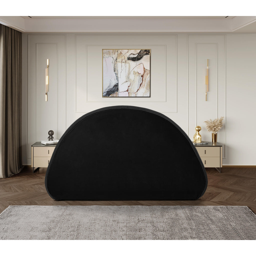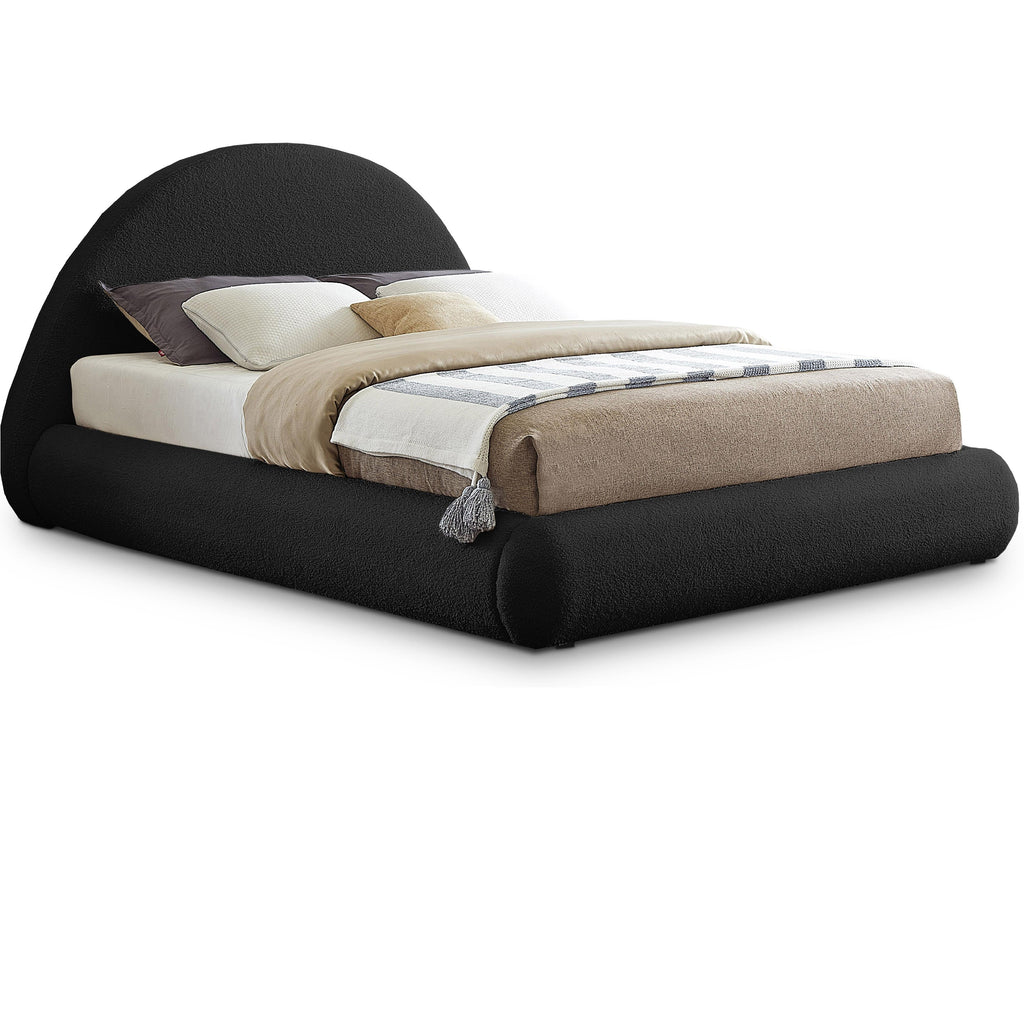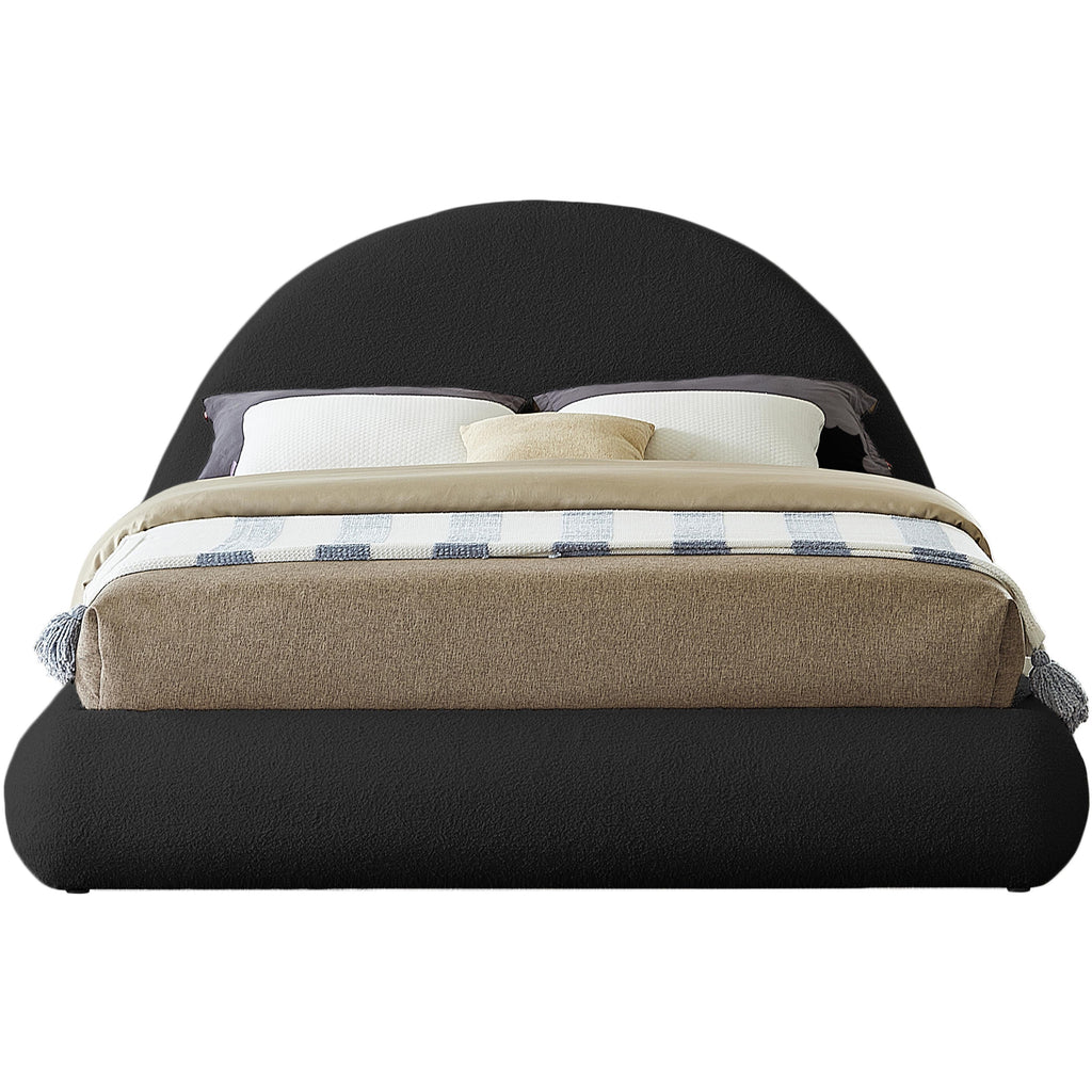 Lend your bedroom a modern feel with this queen-size Rudy teddy fabric bed. A rounded headboard instantly draws the eye and grabs attention while the stacked design provides a contemporary feel to this lovely bedroom essential. The soft black color blends seamlessly with your existing furniture, and a frame constructed from premium materials gives the bed durability, so it lasts for long-term use in your bedroom sanctuary.