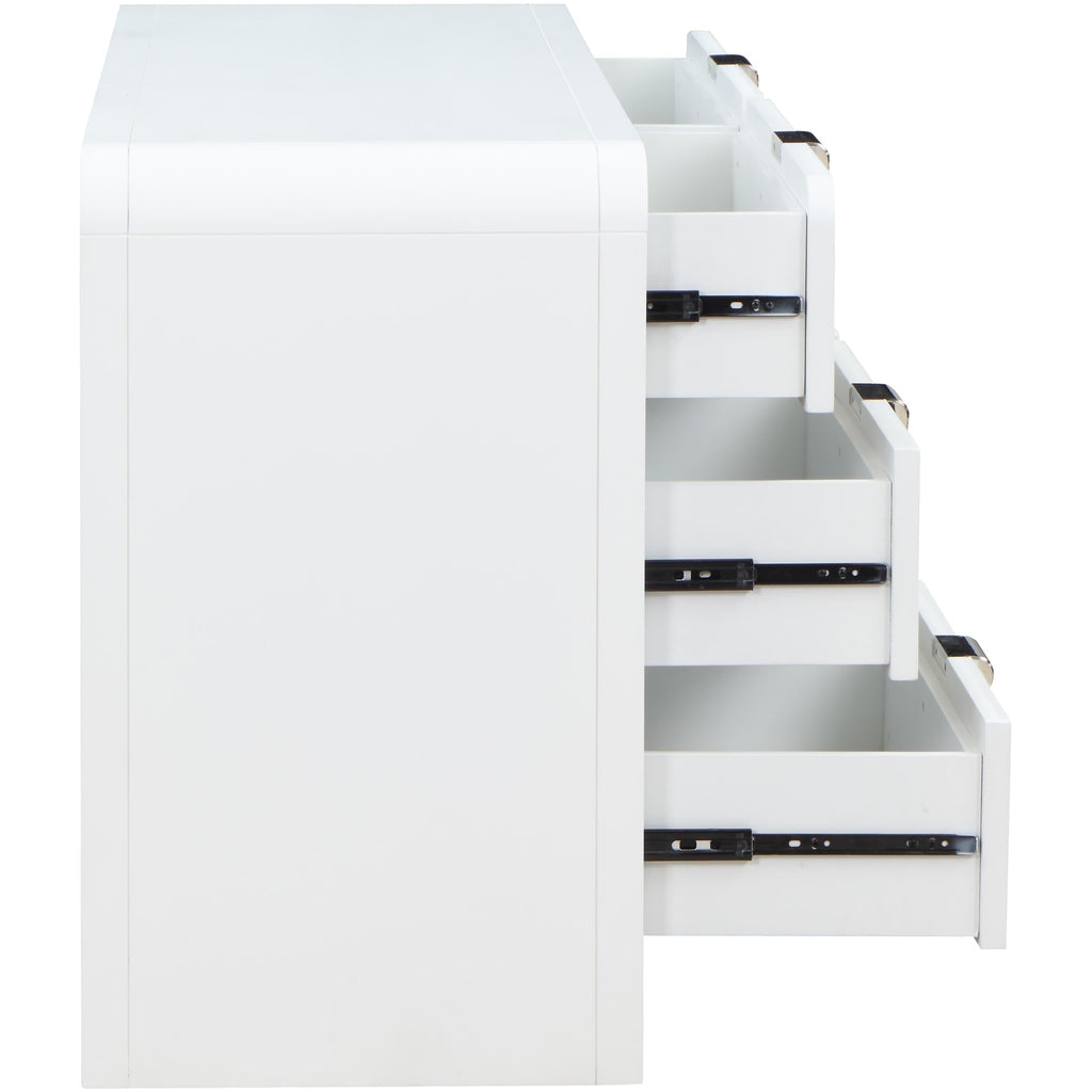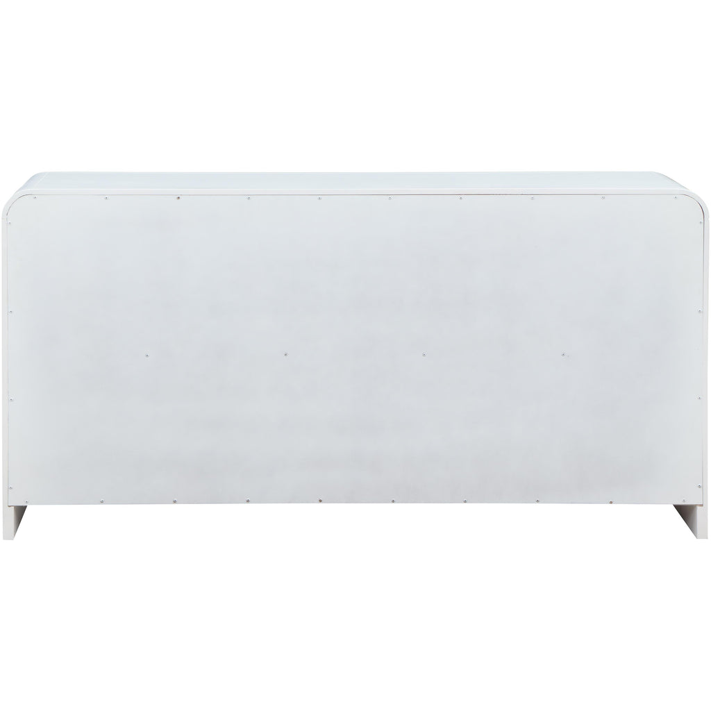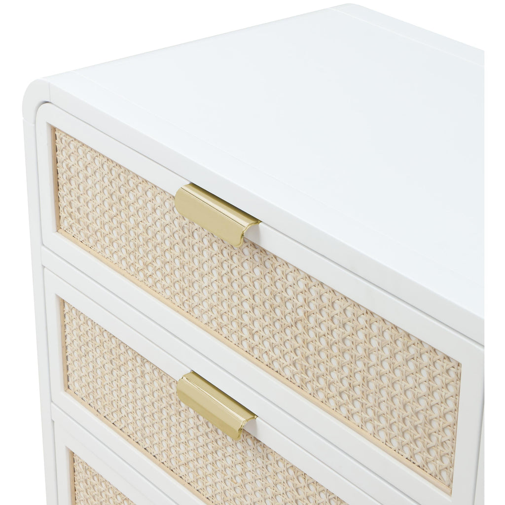 Bold design elements are the hallmark of this Sage wood dresser. This beautiful dresser features up-to-the-minute styling and a white finish that's perfect for your contemporary room. Natural cane details provide an exciting contrast that adds a robust finish to your bedroom look. Two sets of hardware come with this handsome dresser so that you can give it your own unique, personal slant. A rich wood frame ensures lasting beauty and ongoing performance.