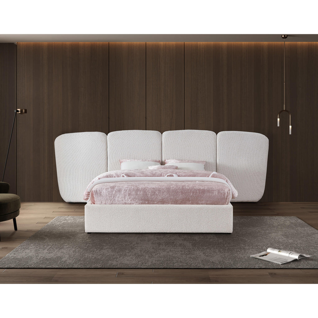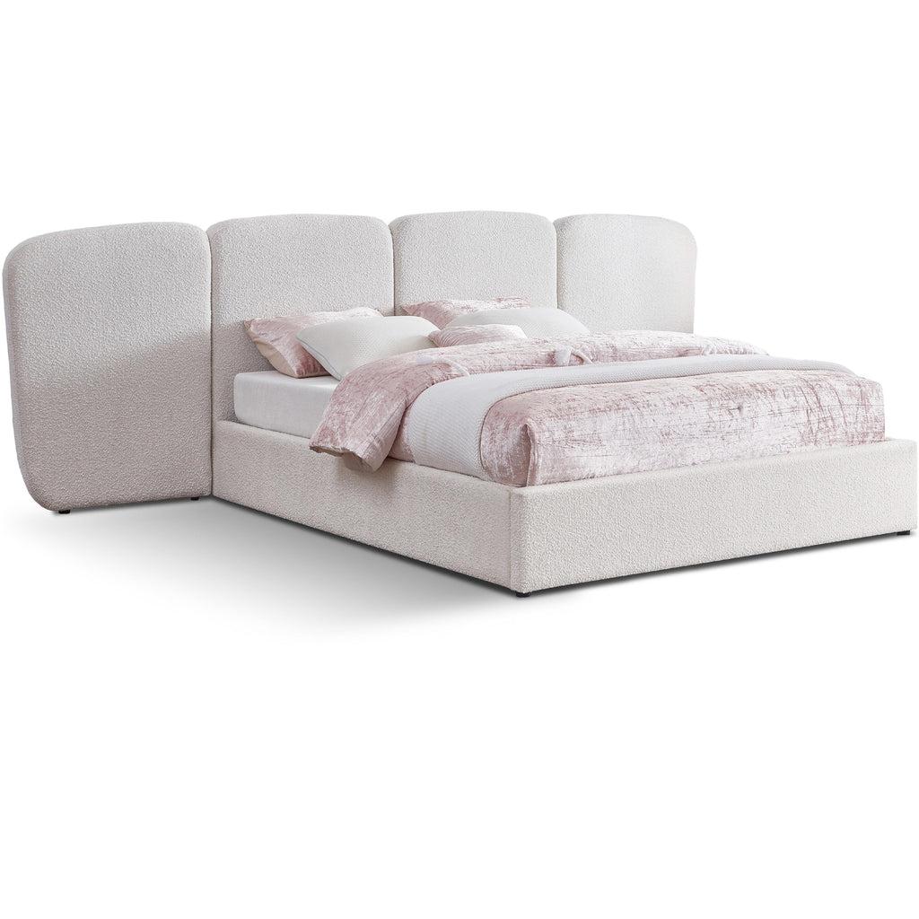 Turn your bedroom into a serene retreat with the exquisite Shiloh Boucle Fabric Queen Bed. The headboard boasts a stunning art deco design that exudes sophistication and luxury, elevating the ambiance of any space. The plush boucle fabric has a rich cream tone that is not only visually appealing but also provides a soft and comfortable touch, adding an element of elegance and refinement to your room. With this bed, you can indulge in a resort-like experience right in the comfort of your own home.