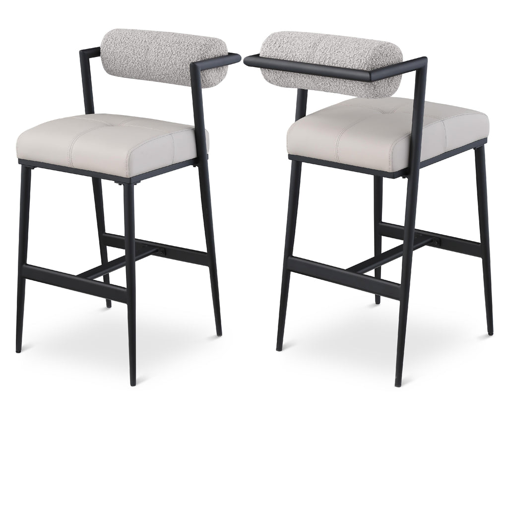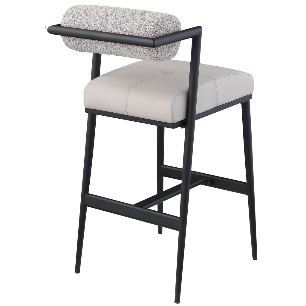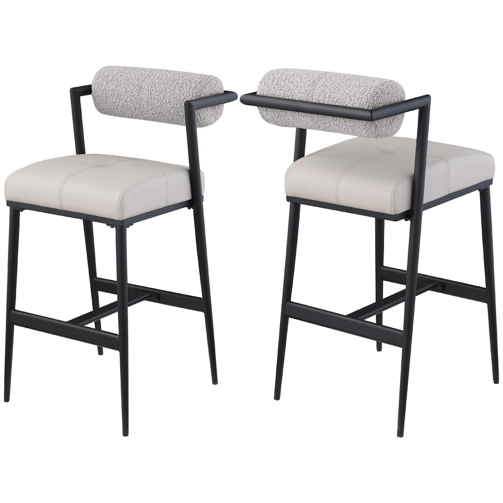 Make your home bar or kitchen counter area the most popular place in your home when you outfit it with these Stryker boucle fabric and leather bar counter stool. This pack of two stools puts a new twist on the traditional bar stool with a sleek silhouette and luxurious upgrades, including seats covered in soft taupe vegan leather that's buttery soft and looks oh-so-real. The backs are upholstered in rich taupe boucle fabric for added comfort and beauty.