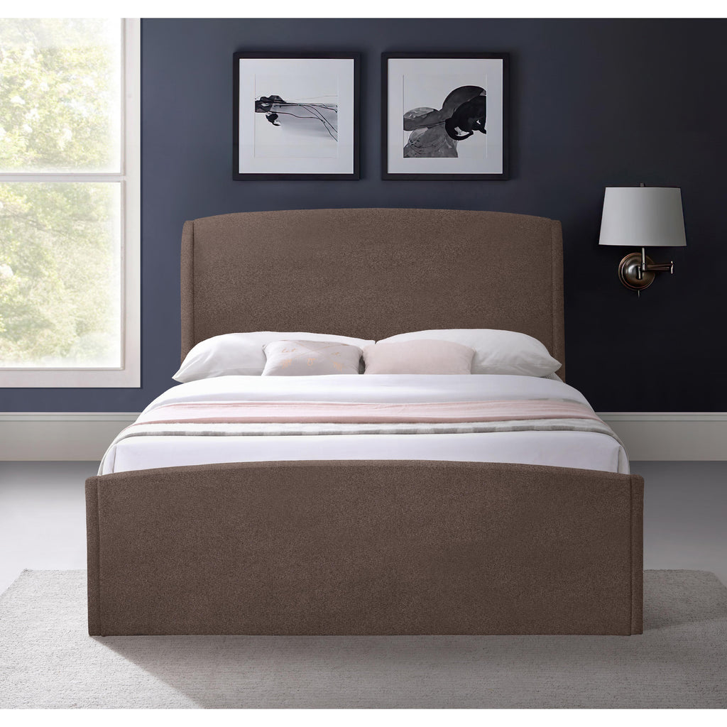 Snuggle up in sophisticated style when you bring home this brown Tess queen-sized bed. This bed checks all the boxes when it comes to elegance and refined living, with its soft brown velvet fabric upholstery and curvy shape. A tall headboard gives the bed a commanding presence in your room, ensuring it's the center of attention.