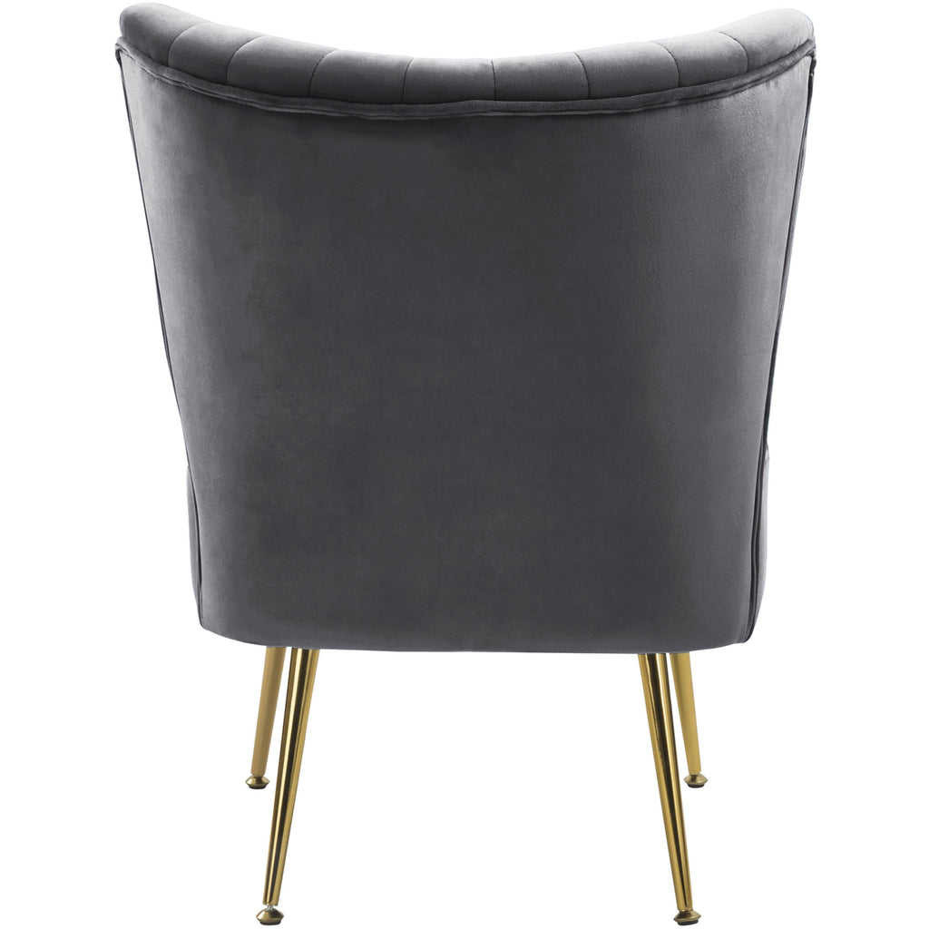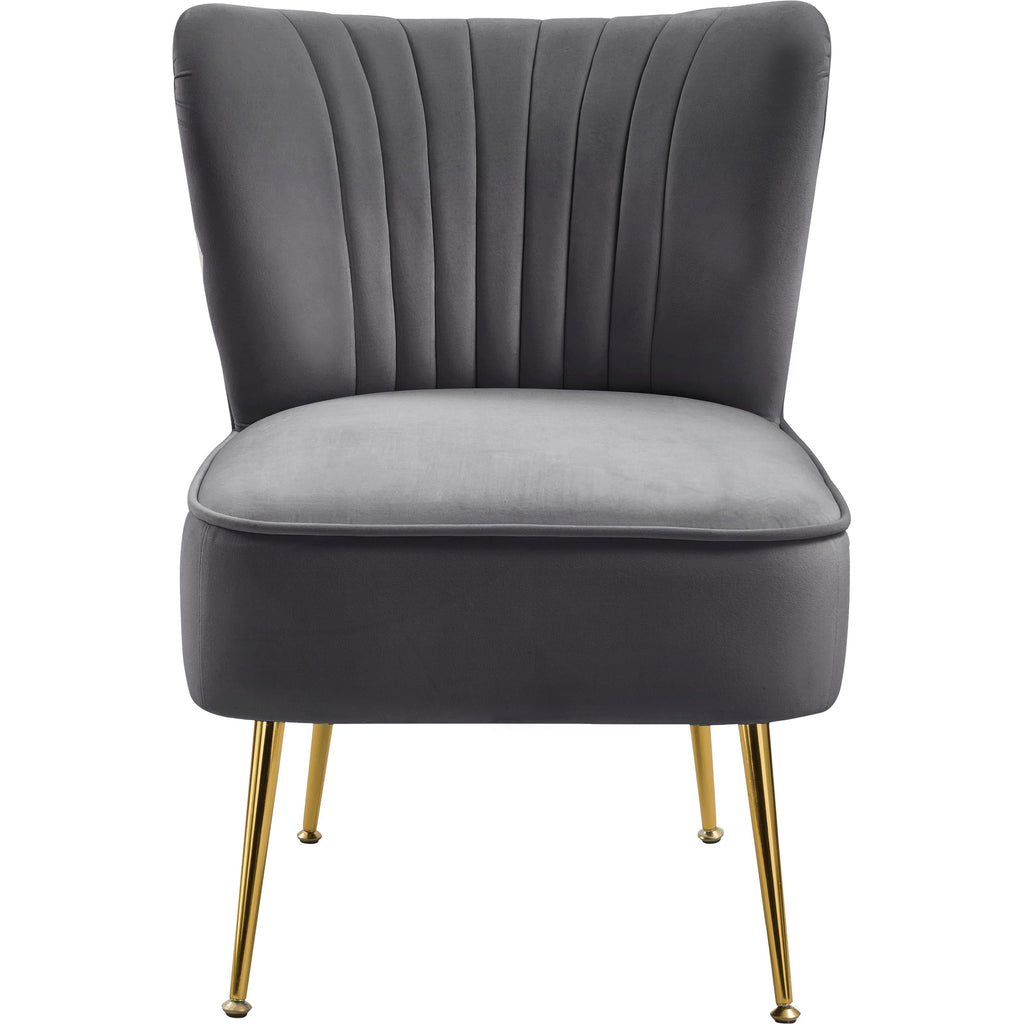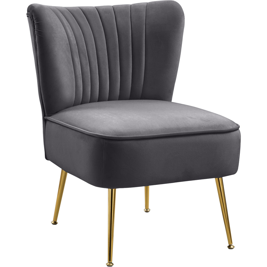 Bring home this Tess velvet accent chair to give them something to talk about. This handsome chair will be the talk of the town with its soft grey velvet upholstery that's sleek and comfortable against the skin. Deep channel tufting along the back of the chair adds to its upscale look, and gold steel legs ensure the chair's a good fit with contemporary decor.
