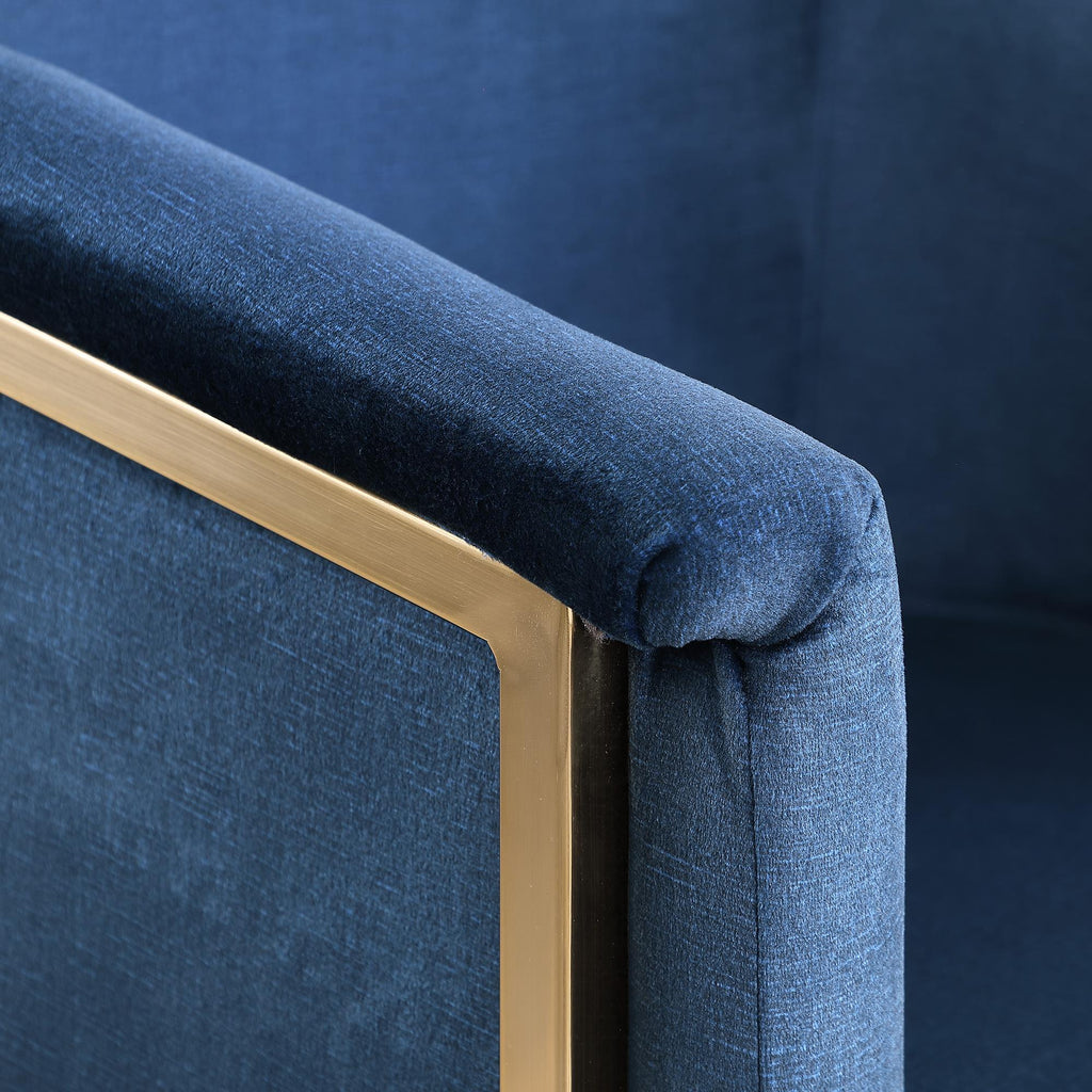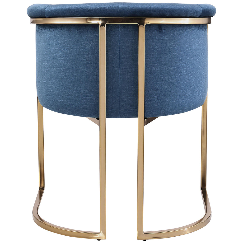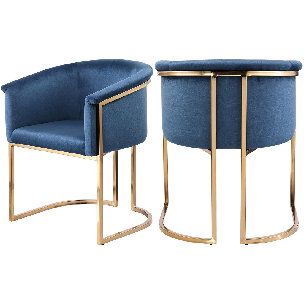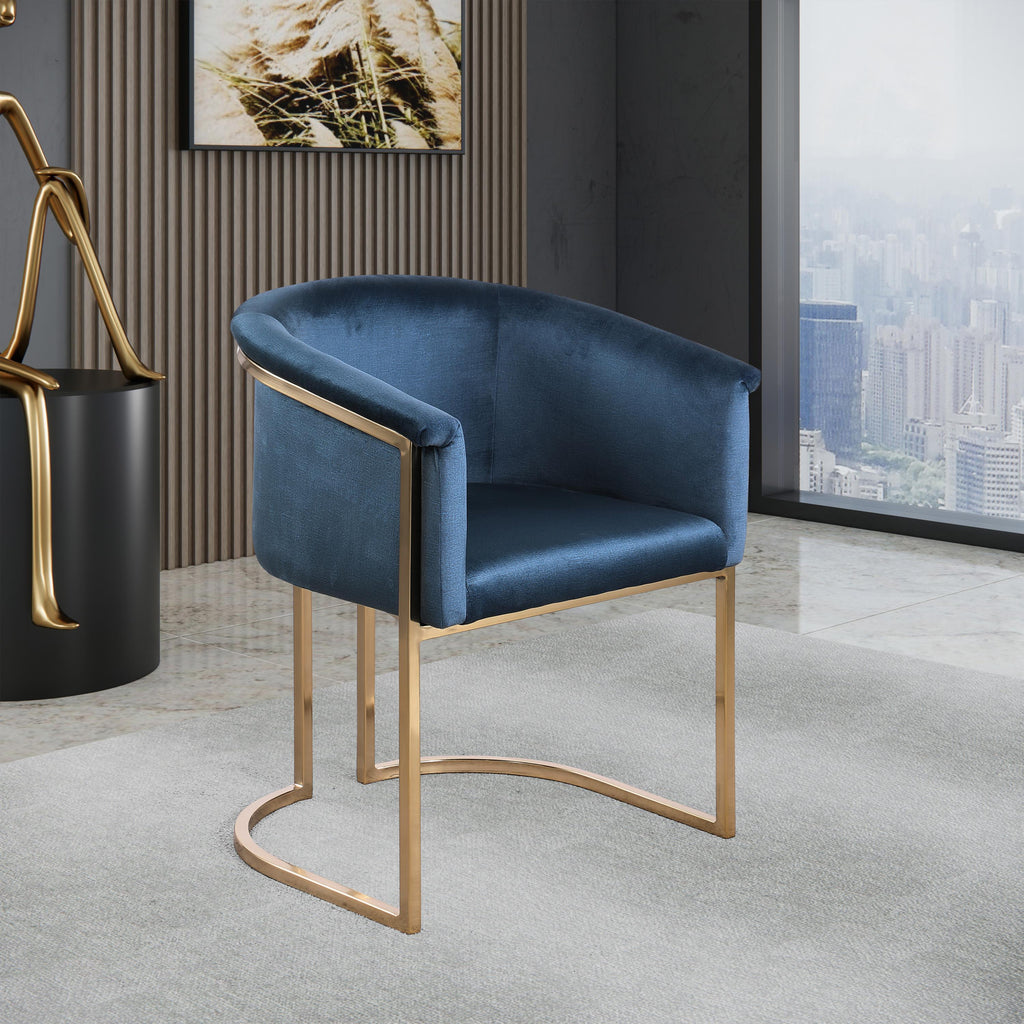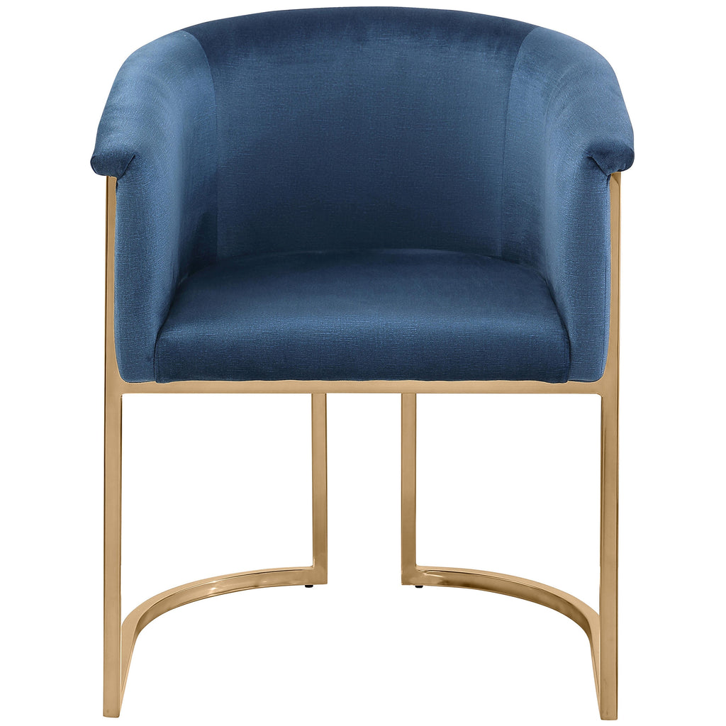 Enjoy body-hugging comfort at every meal with this Tierra velvet dining chair. Rich navy velvet covers the seat, arms and back of this comfortable yet beautiful chair. The frame is made from durable metal for resilient, long-lasting use, and it features a brushed brass finish for a look that's both modern and elegant. Pair it with the table of your choice for a modern look in your dining room space.
