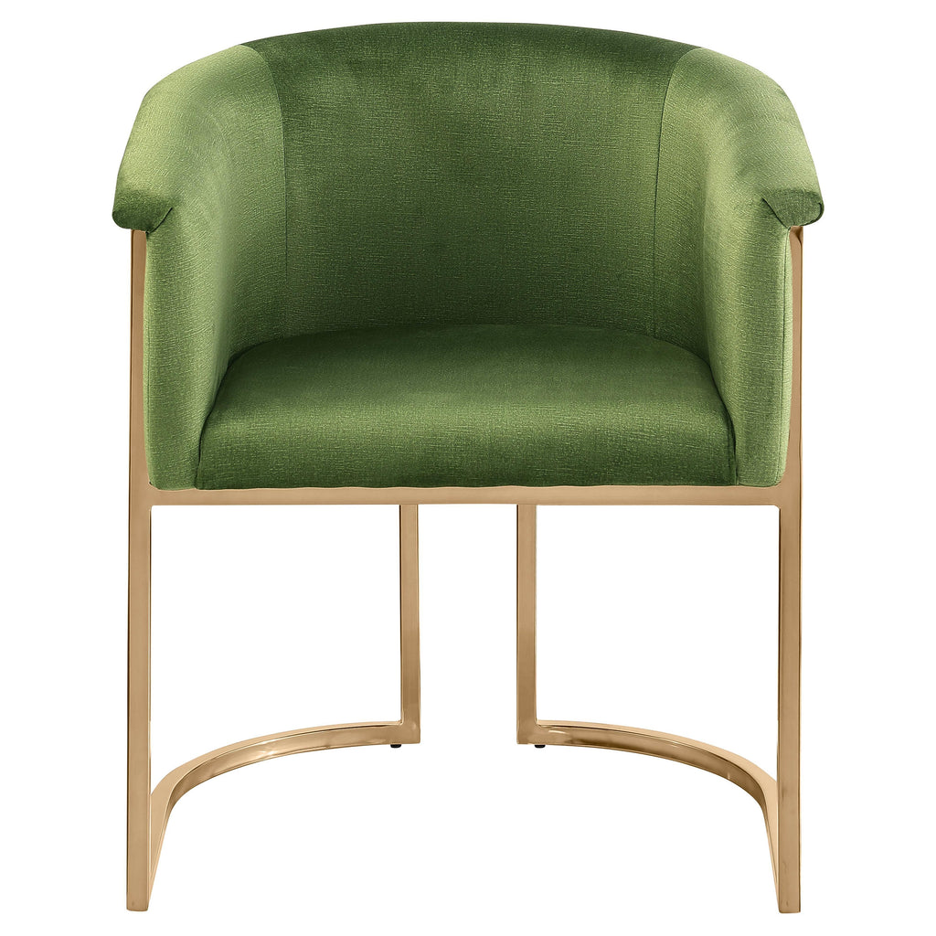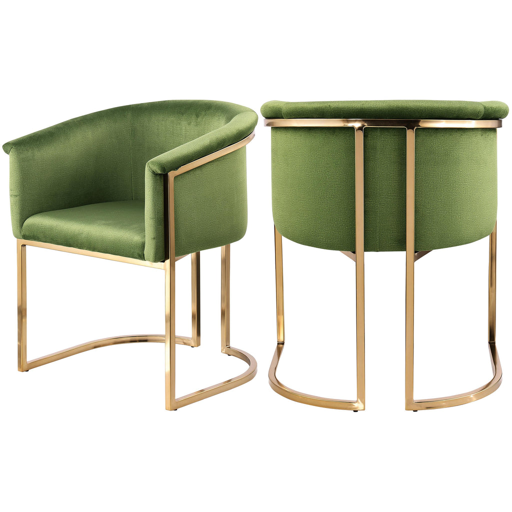 Enjoy body-hugging comfort at every meal with this Tierra velvet dining chair. Rich olive velvet covers the seat, arms and back of this comfortable yet beautiful chair. The frame is made from durable metal for resilient, long-lasting use, and it features a brushed brass finish for a look that's both modern and elegant. Pair it with the table of your choice for a modern look in your dining room space.