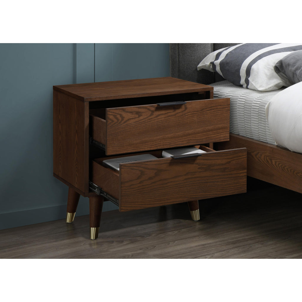 Trust this Vance nightstand to give your room a totally new look and an elegant vibe. Made from real wood with a walnut finish, this nightstand pairs beautifully with the bed in the same collection. Two drawers provide oodles of space for nighttime necessities, and the flared legs give the nightstand an exceptionally contemporary yet midcentury slant.
