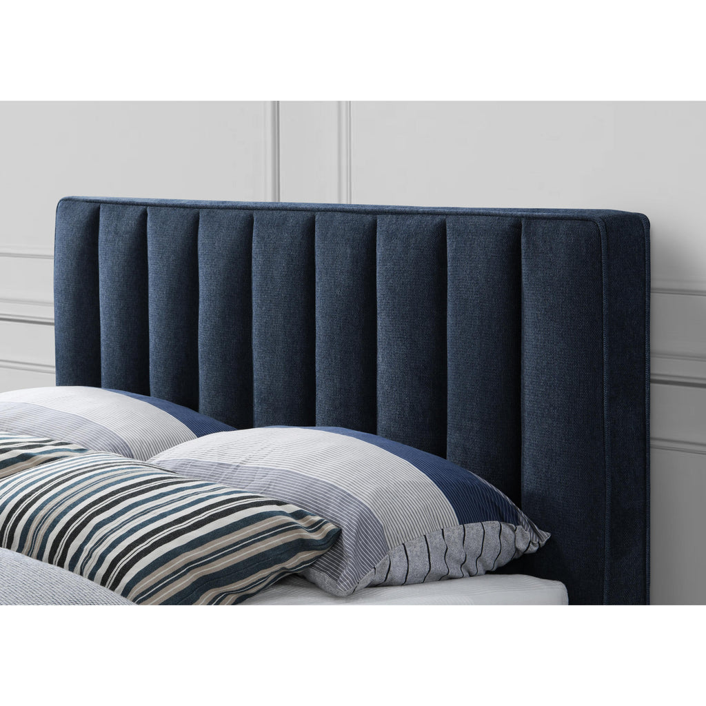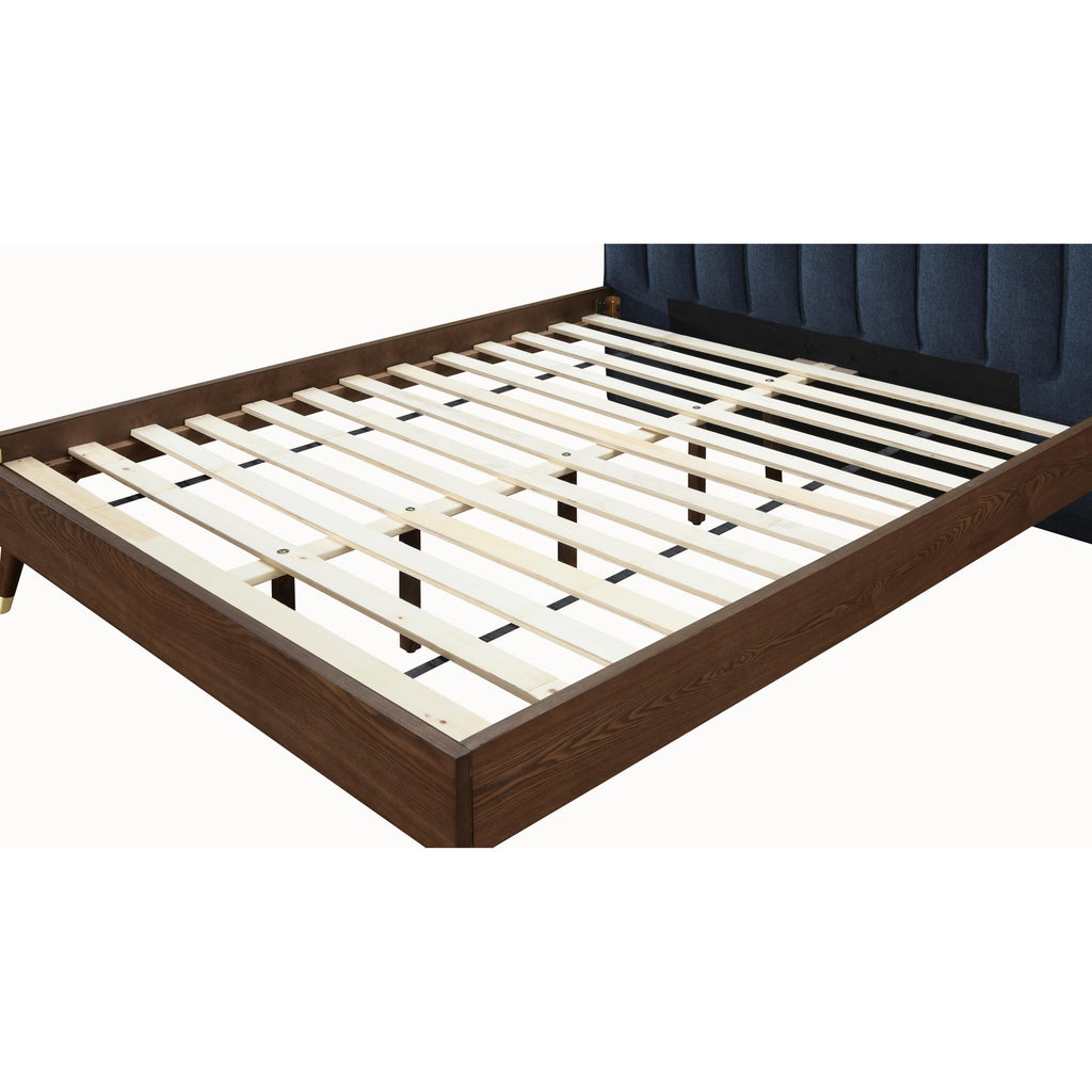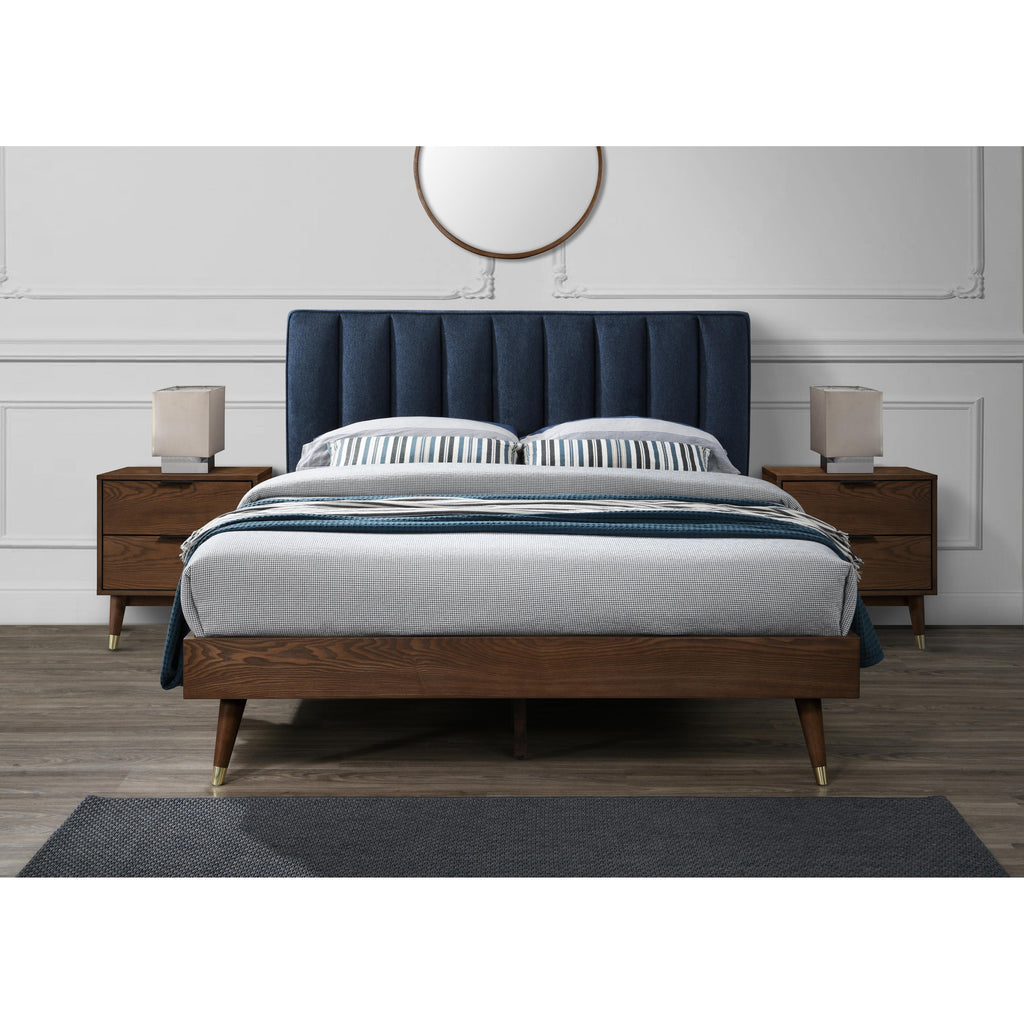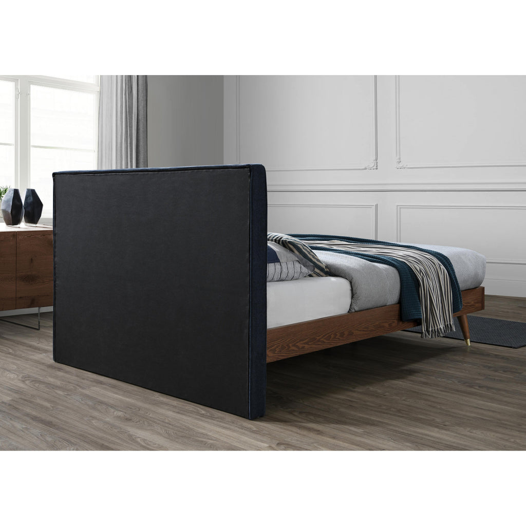Trust this Vance midcentury modern linen textured queen-size bed to give your room a totally new look and an elegant vibe. The frame is made from real wood with a walnut finish, so this bed pairs beautifully with the nightstand in the same collection. The linen textured headboard covered in soft and durable navy linen textured fabric upholstery for softness and comfort provides an exceptionally contemporary yet midcentury slant.