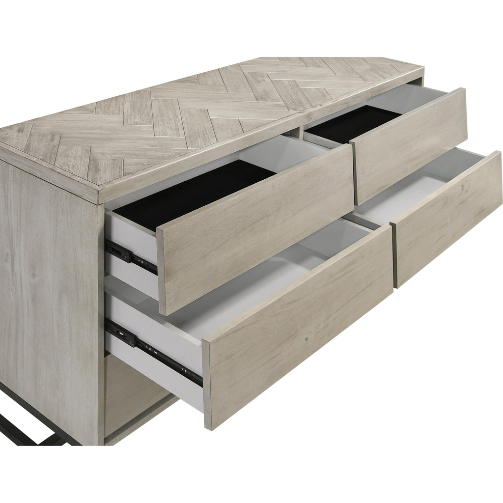 Count on this Weston dresser to give your bedroom a burst of industrial midcentury charm along with organizational power for your belongings. Each piece features a grey stone wood finish that's modern and boldand that looks both sleek and chic in your contemporary bedroom. Mix and match the pieces of this elegantly eye-catching collection to suit your space requirements and needs.