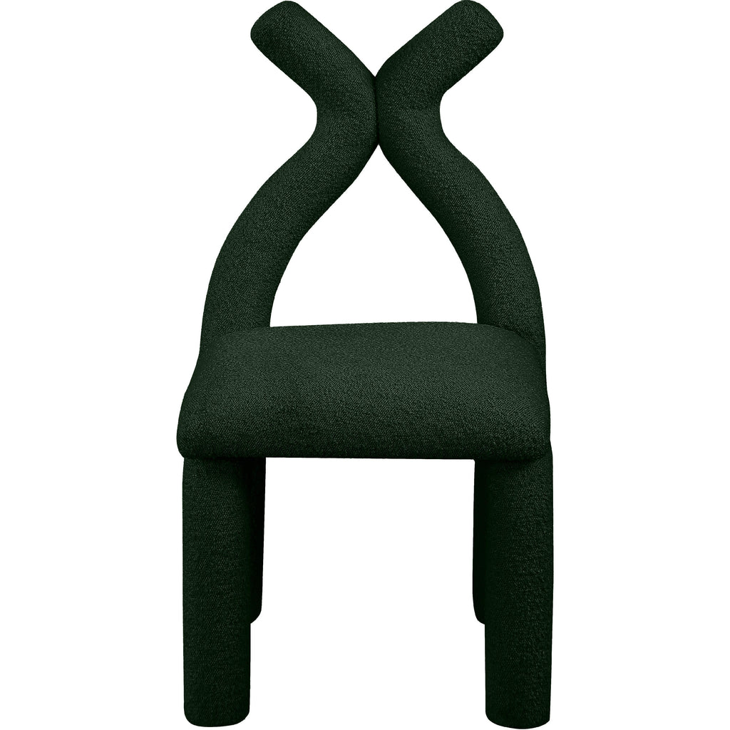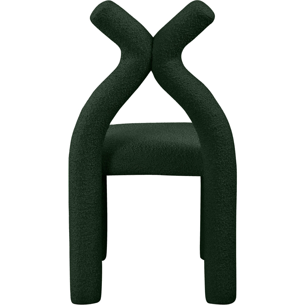Make a bold statement in your home's decor with the striking Xena Boucle Fabric Accent/Dining Chair. The luxurious green boucle fabric paired with the solid wood inner frame not only exudes comfort and durability but also adds a touch of sophistication to your living space. Its unique and artful design is bound to captivate the eyes of anyone who enters your home.