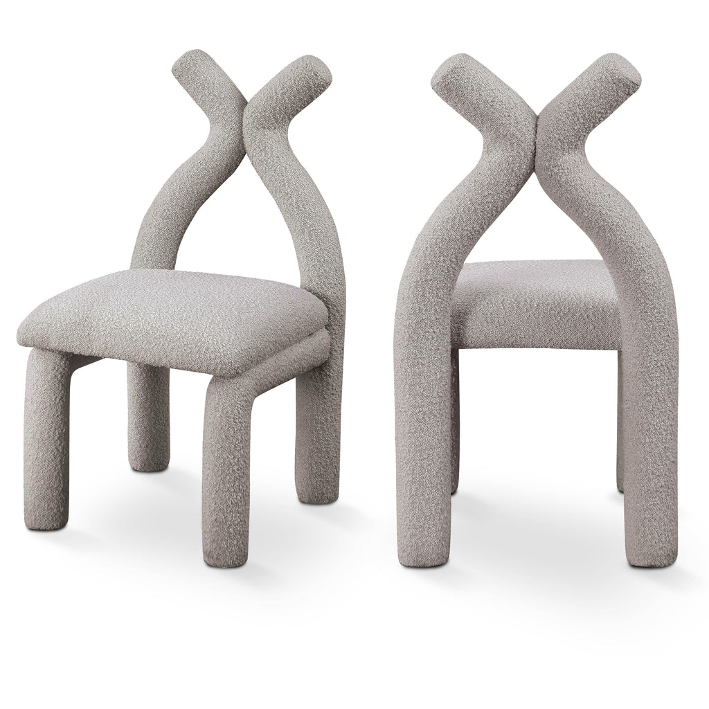 Make a bold statement in your home's decor with the striking Xena Boucle Fabric Accent/Dining Chair. The luxurious taupe boucle fabric paired with the solid wood inner frame not only exudes comfort and durability but also adds a touch of sophistication to your living space. Its unique and artful design is bound to captivate the eyes of anyone who enters your home.