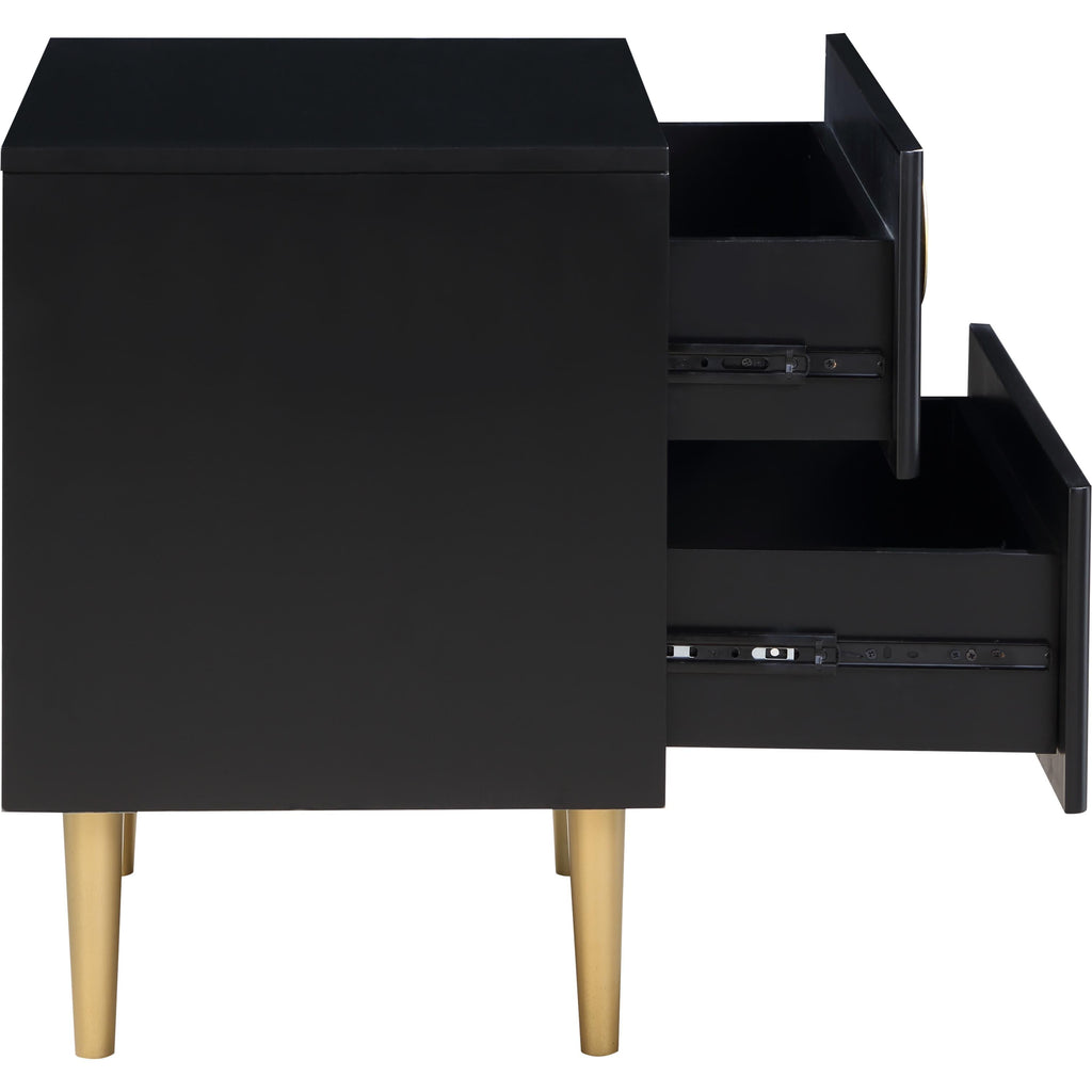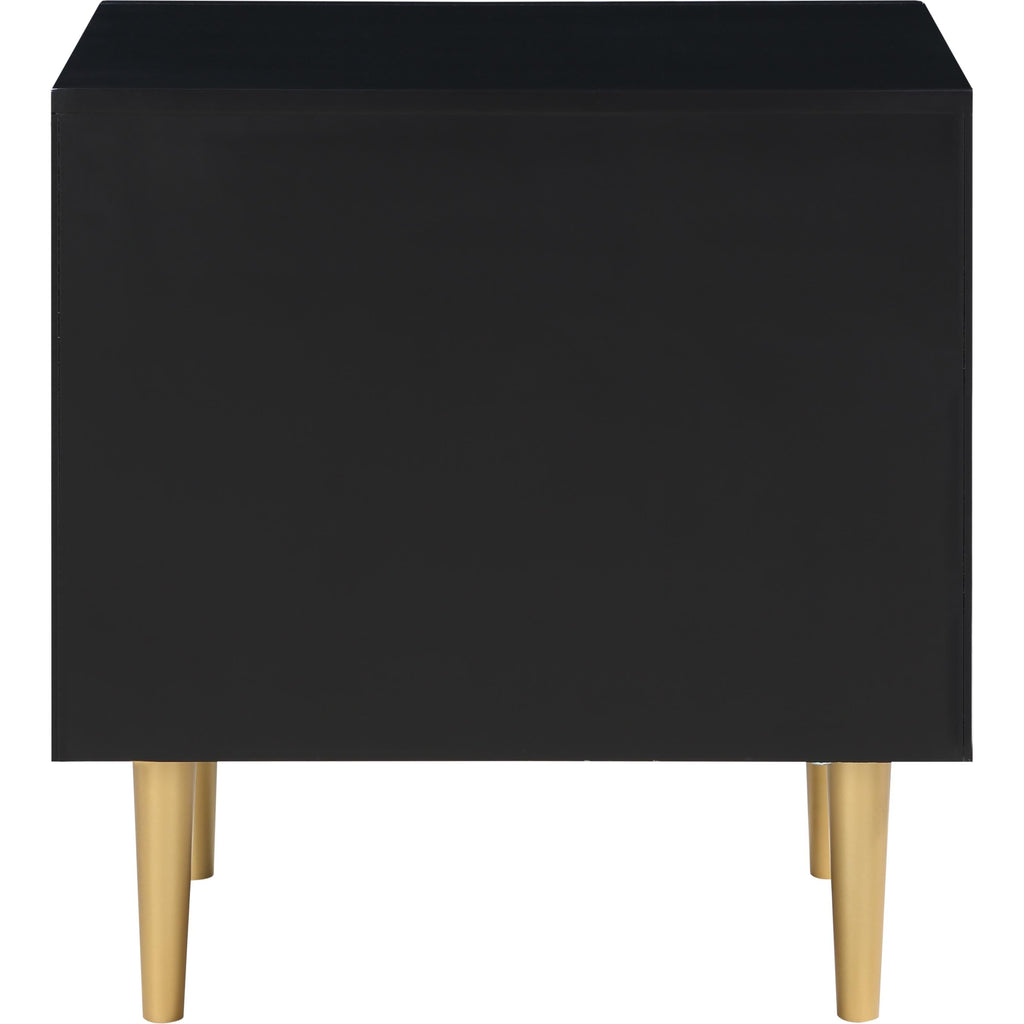 Watch your decor cascade to new heights when you bring home this Zayne night stand. It features a rich black finish that sets an instant contemporary vibe in your space. Its brushed gold metal legs and handle add a sophisticated slant to the piece's design, ensuring it's a simple and easy fit with other modern pieces. Pair this unit with other items in the Zayne collection for a seamless presentation in your room.