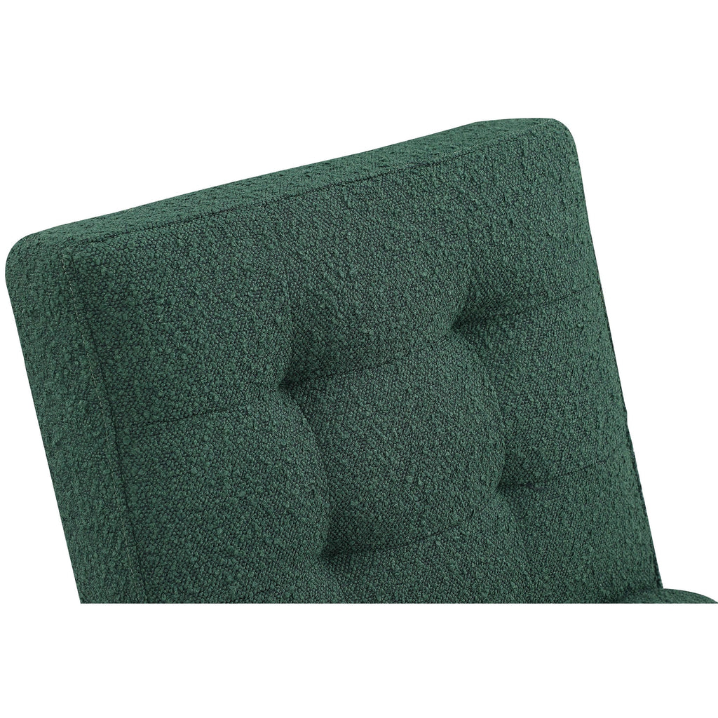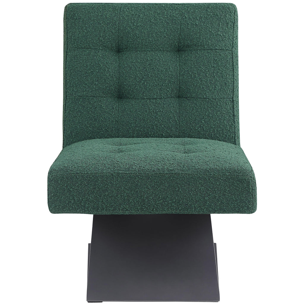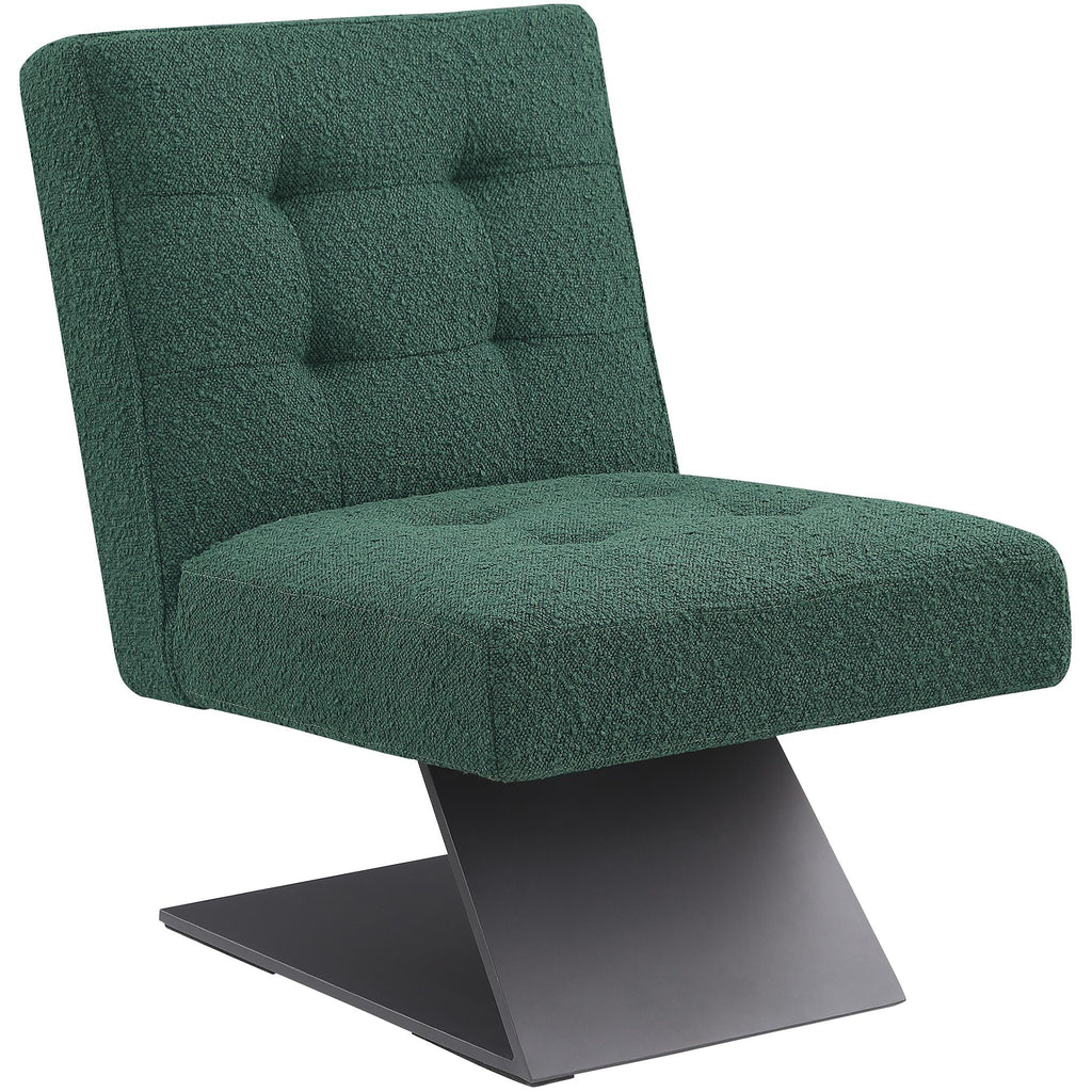 Rest your bones in style when you're kicked back in this Zeal boucle fabric accent chair. This handsome chair rests on a slanted base, giving it a silhouette that's not easy to miss, no matter where you choose to use it. Upholstered in rich green ack boucle fabric from the top of its back to the seat, this chair rests on an all-metal base for impeccable sturdiness and reliability.
