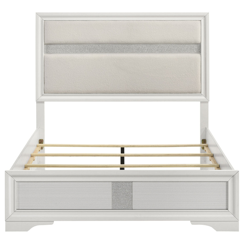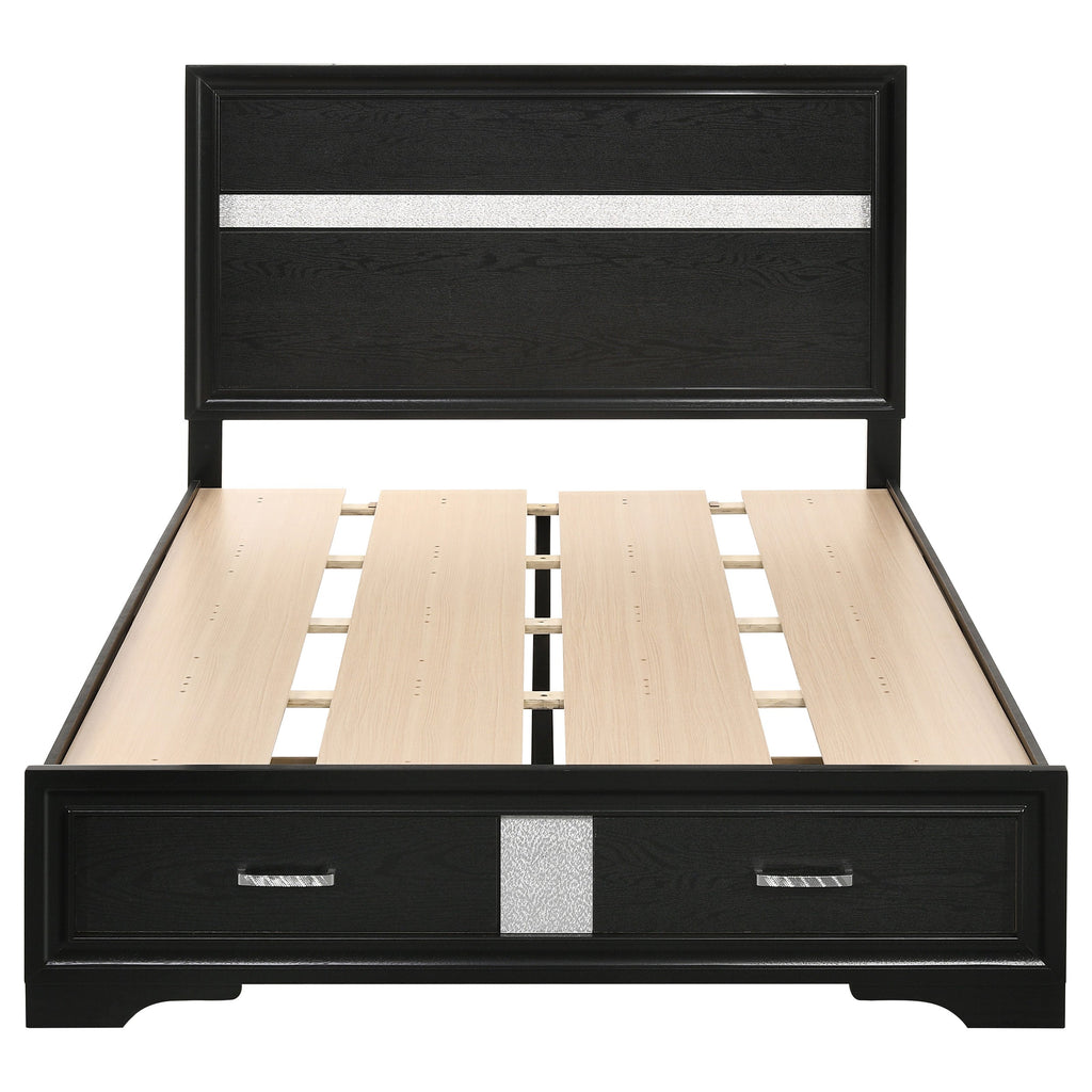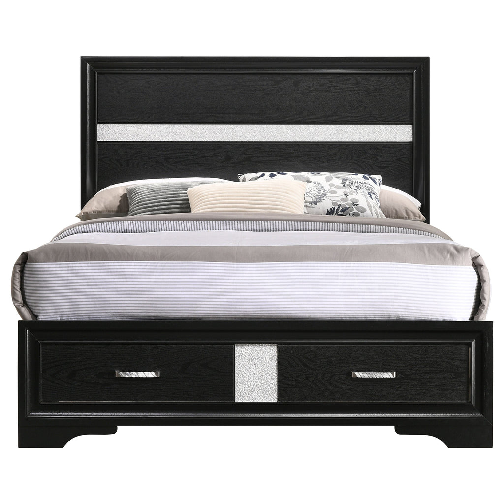 This alluring bed from the Miranda collection has both fashion and function. It features crisp lines and a headboard that's as simple as it is impressive. The footboard is built with two roomy drawers to hold extra sheets and blankets. The bed has an effortless timelessness and elegance. Add to the bedroom for a charming ambiance that's sure to please.