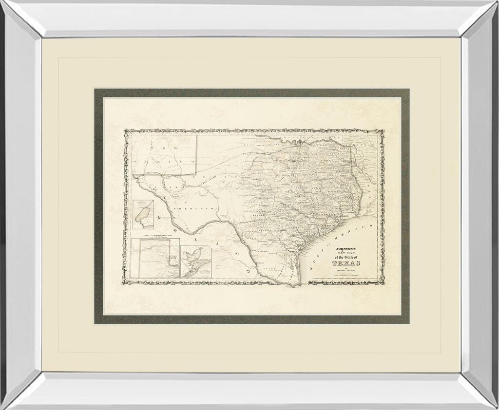 Mirrored Frame New Map Of The State Of Texas By Johnson And Wank 34X40 Mirror Frame Print