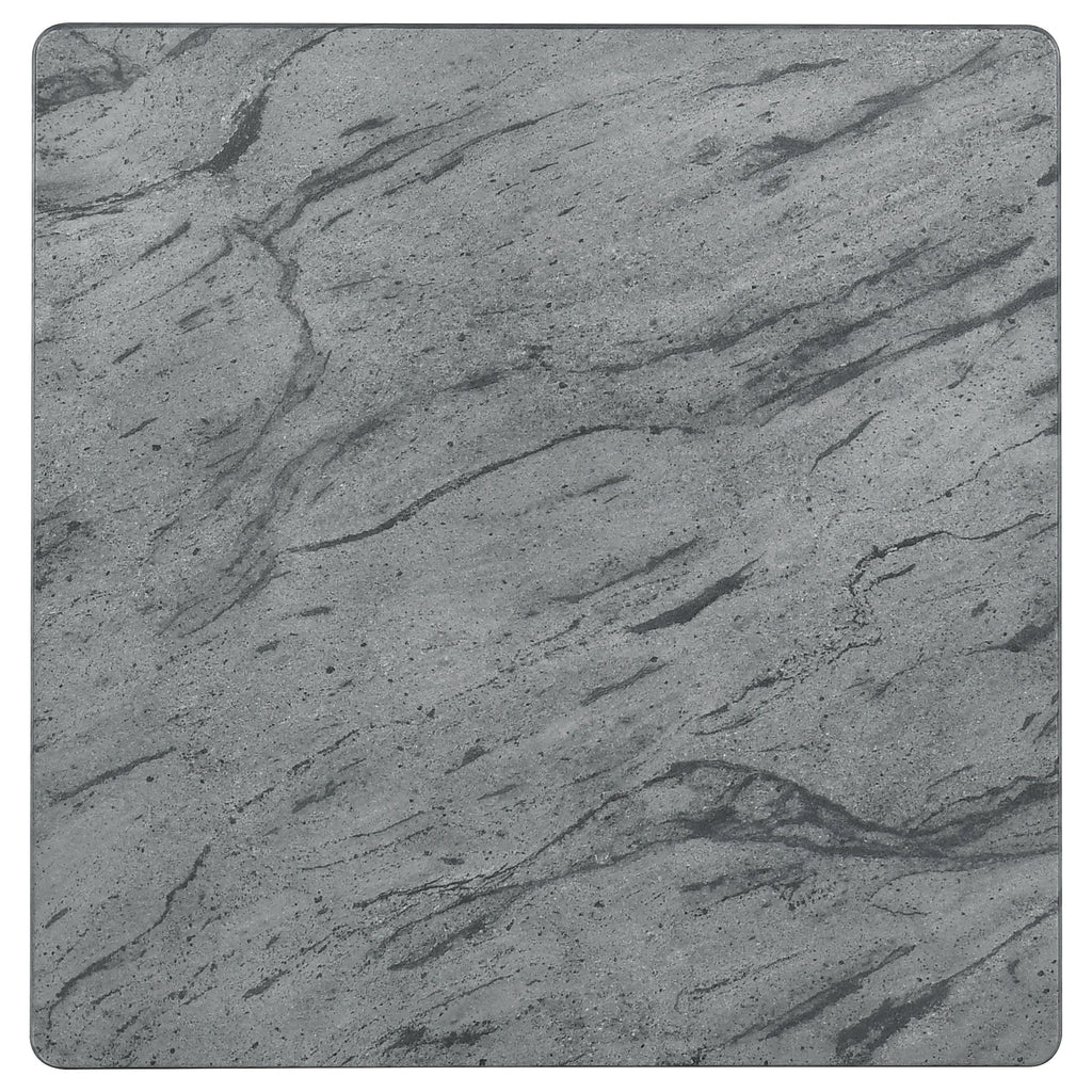 End table with a grey faux marble high-pressure laminate top for a refined and modern appearance
