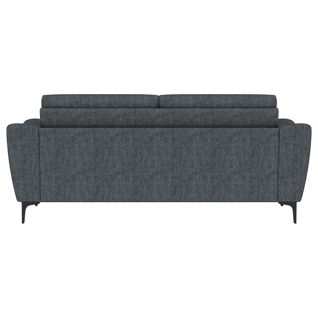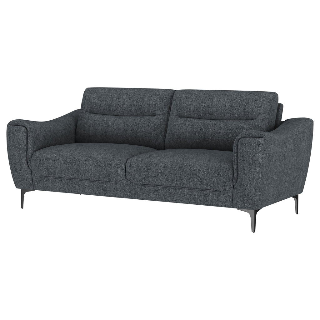 Indulge in effortless style and comfort with this chic transitional sofa. Soft charcoal upholstery gracefully harmonizes with any décor, while plush pocket coil seat cushions and modern track arms provide inviting support for your downtime. Designed with attached cushions for a neat appearance and innovative metal legs that allow for easy assembly, this collection elevates the overall ambiance of your living space.