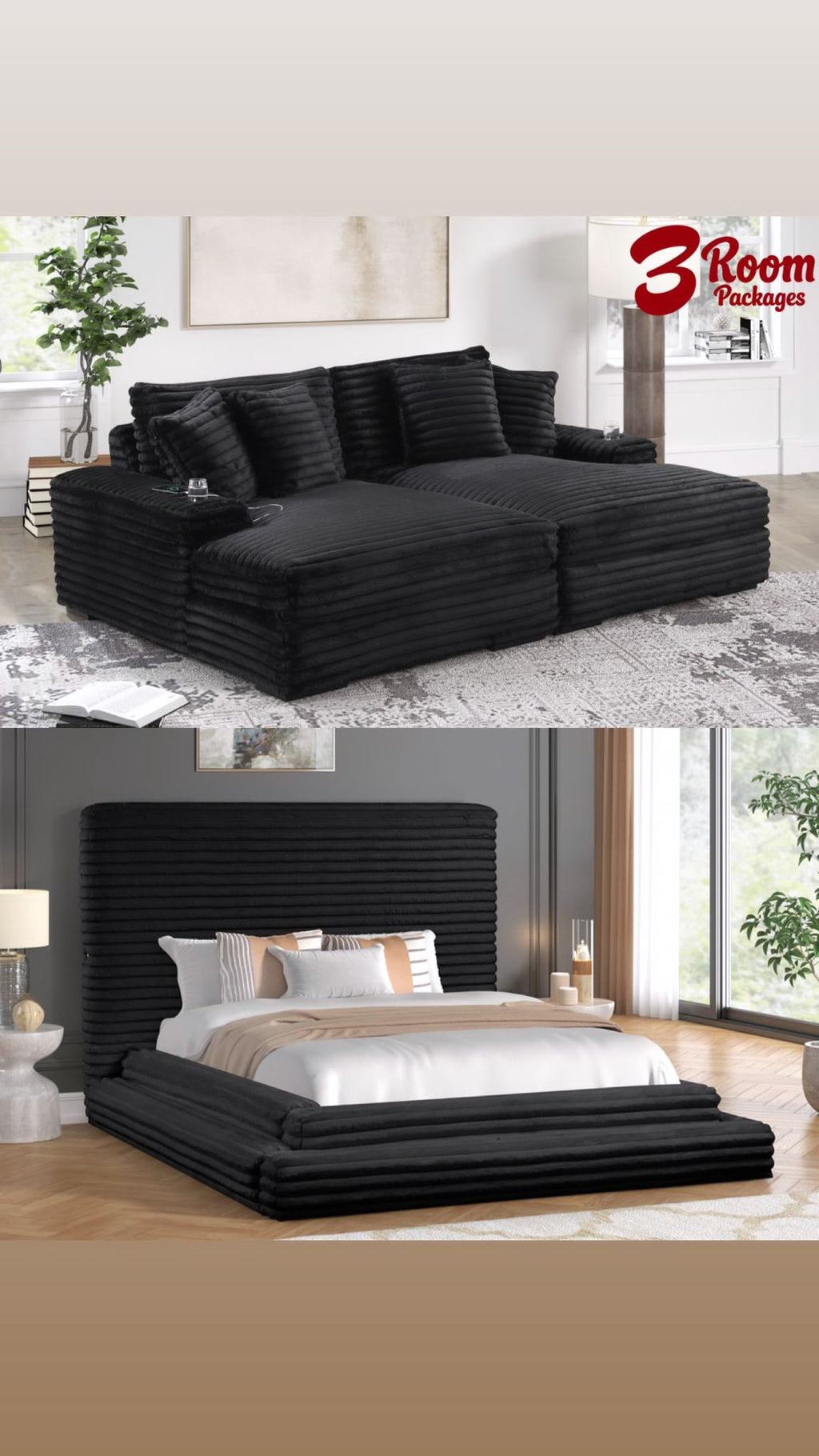 Transform your space with a seamless blend of style and comfort! 3RoomPackages presents the ultimate package, pairing our chic Mariah Black Platform Bed with a luxurious black couch to instantly elevate your bedroom into a sophisticated sanctuary and lounge area.