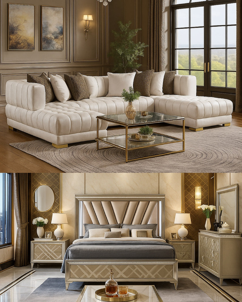 Nova Gold 3-Room Set – Sectional & Bedroom Collection (Mattress Included)