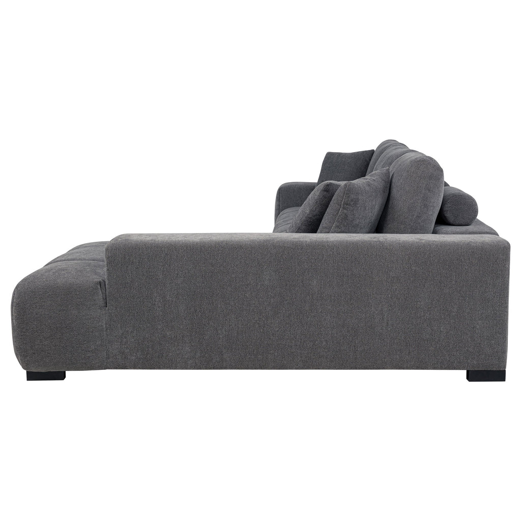 Embrace comfort and timeless style with this mid-century inspired sectional sofa. Designed for relaxed lounging, it showcases wide, rounded arms and plush waterfall seat cushions adorned with subtle grid tufting. Soft, neutral upholstery envelops a sturdy frame, ensuring lasting quality. Reversible back cushions and supportive accent pillows let you effortlessly customize your seating experience. The result is a captivating centerpiece that elevates any living area’s ambiance.