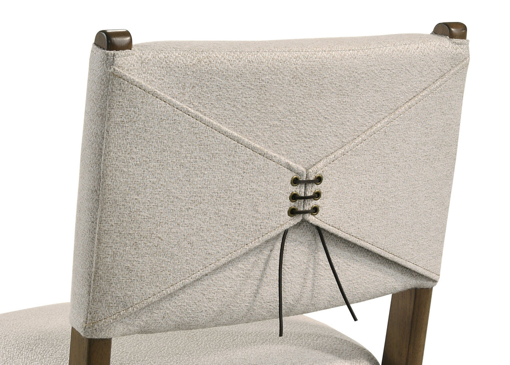 Chairs upholstered in light tan fabric with foam-padded seats for comfort