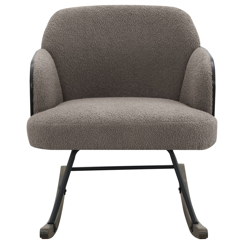 This modern rocking chair blends cozy comfort with sophisticated design, making it an ideal addition to any contemporary home. The plush boucle fabric upholstery wraps the seat and backrest, providing a soft and inviting surface. The walnut-finished bentwood frame adds warmth and elegance, while the curved wooden rockers and sturdy metal legs ensure smooth, stable motion. Whether used in a living room, nursery, or reading nook, this chair's sleek, modern silhouette complements a variety of interiors. Combining high-quality materials and a striking design, this rocker offers both style and comfort for your favorite spaces.